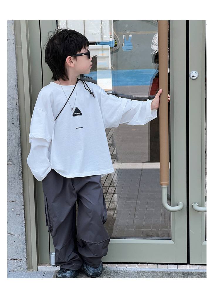 McKexi 아동복 아동용 긴팔 티셔츠 2022 봄 신제품 중대형 어린이 한국 스타일 소년 패션 바닥 셔츠 트렌드스토어 가기