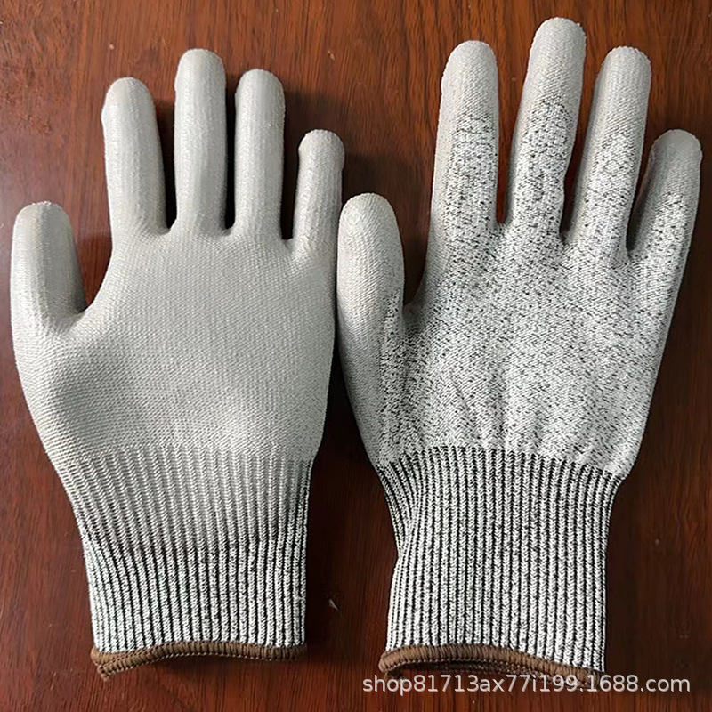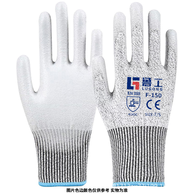 Lu Gong CE 인증서 EN388 안티 커팅 등급 5 고강도 PE 와이어 유리 섬유 소재 등급 D 안티 커팅 노동 장갑 도매