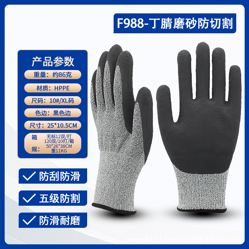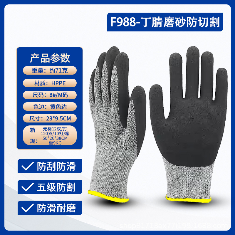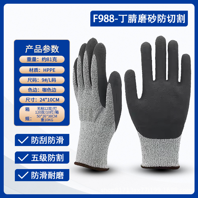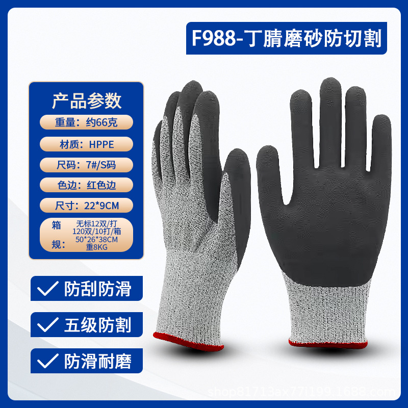 Lu Gong CE 인증서 EN388 안티 커팅 등급 5 고강도 PE 와이어 유리 섬유 소재 등급 D 안티 커팅 노동 장갑 도매스토어 가기