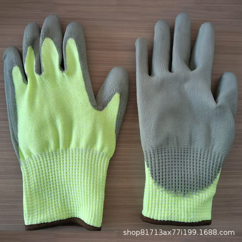 • 레벨 5 절단 방지 PU 형광 노란색