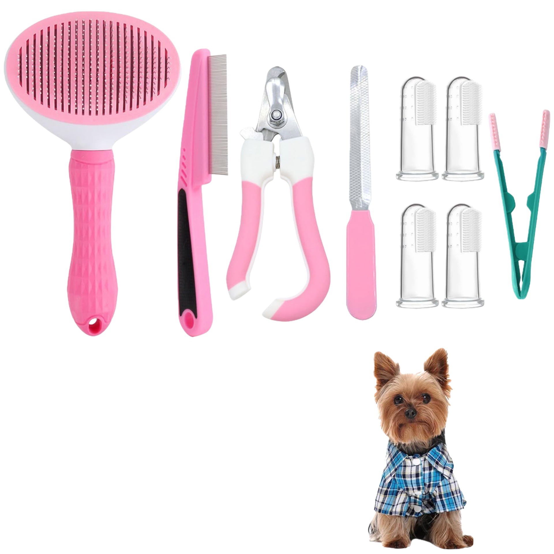 애완 동물 네일 클리퍼 및 파일 애완 동물 아이 브러시로 10 조각 세트 고양이 개 브러시 뷰티 세트 애완 동물 자체 청소 세트