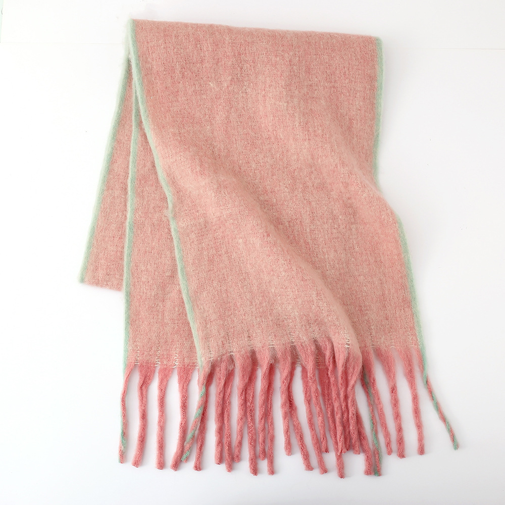 국경 간 한국식 단색 위커 스카프 여성의 겨울 두꺼운 루프 원사 따뜻한 학생 목도리