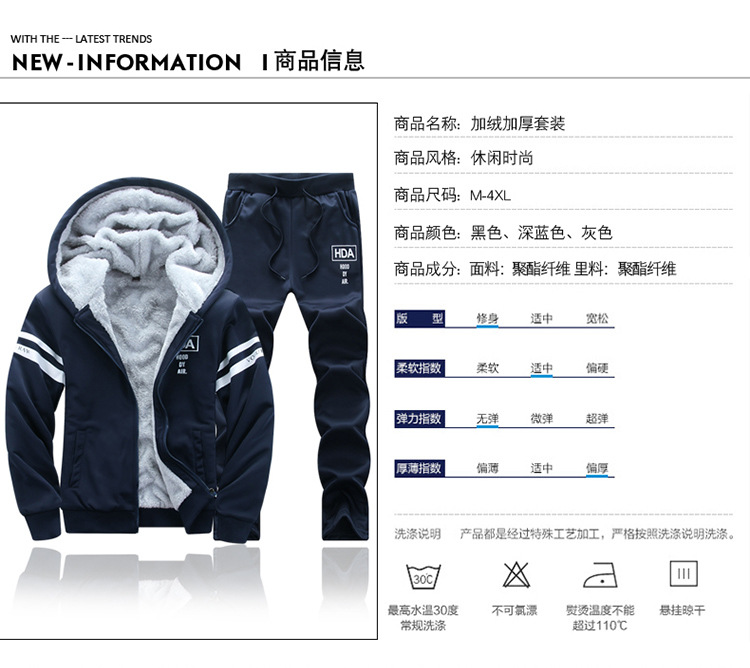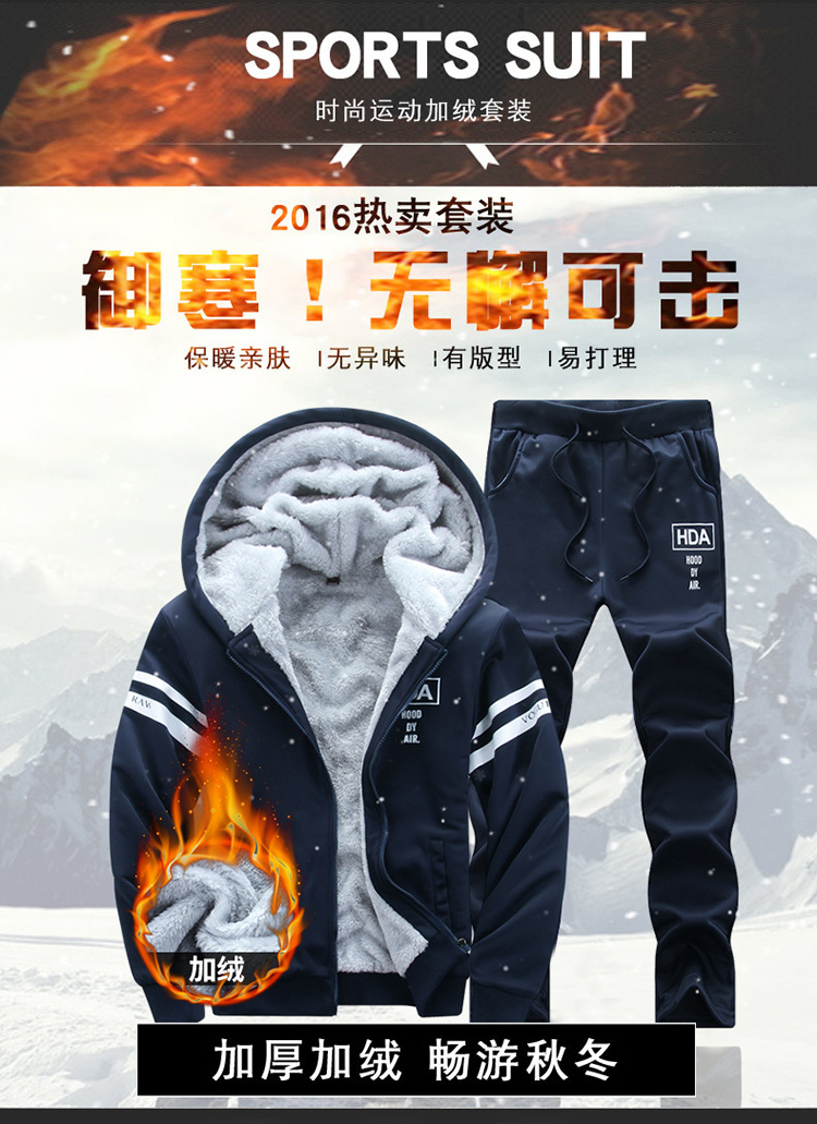 국경 간 AliExpress는 남자 기모 두꺼운 겨울 옷을 세트 따뜻한 세트 남성 가을과 겨울 레저 스포츠를 기원합니다.