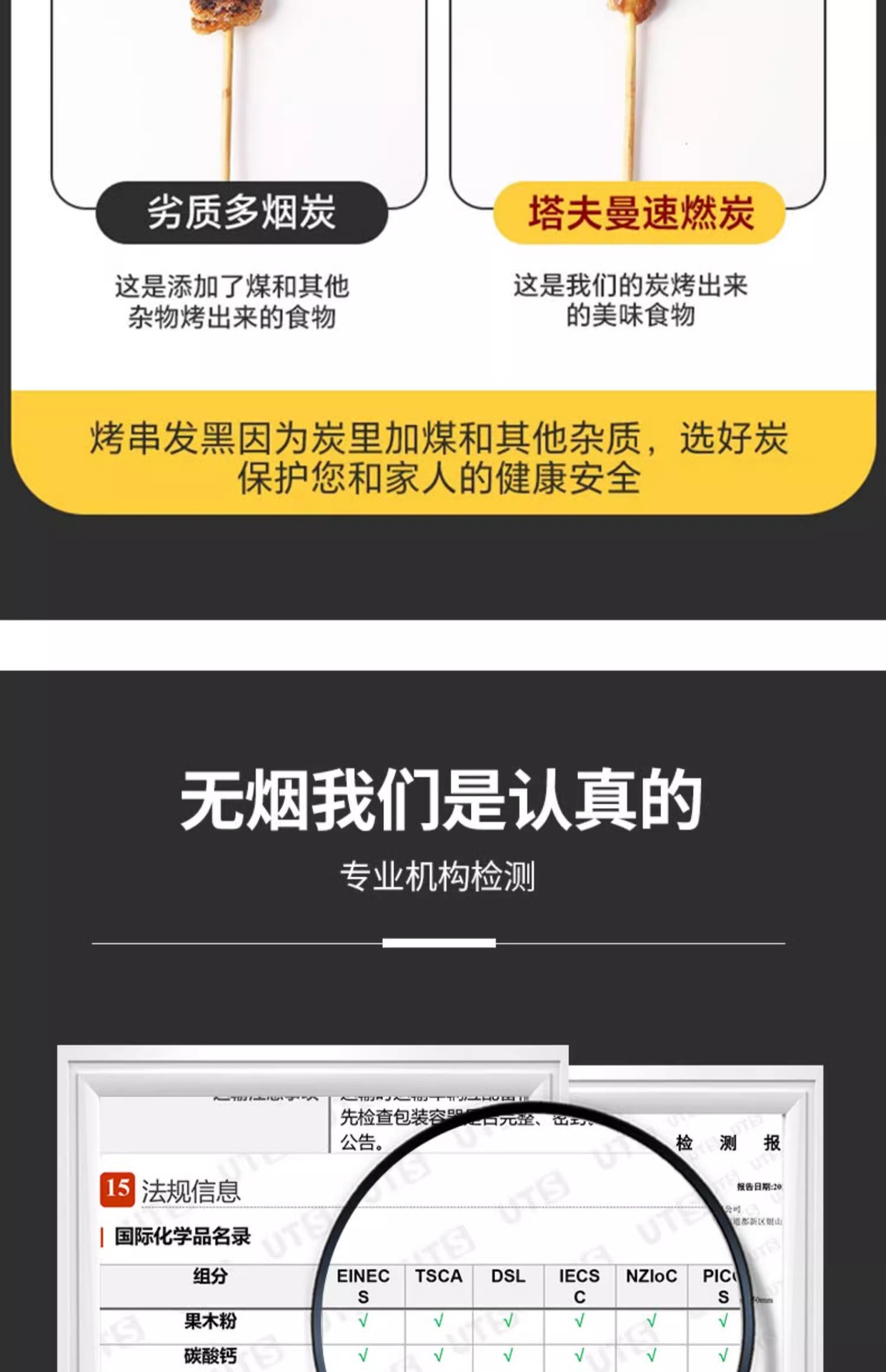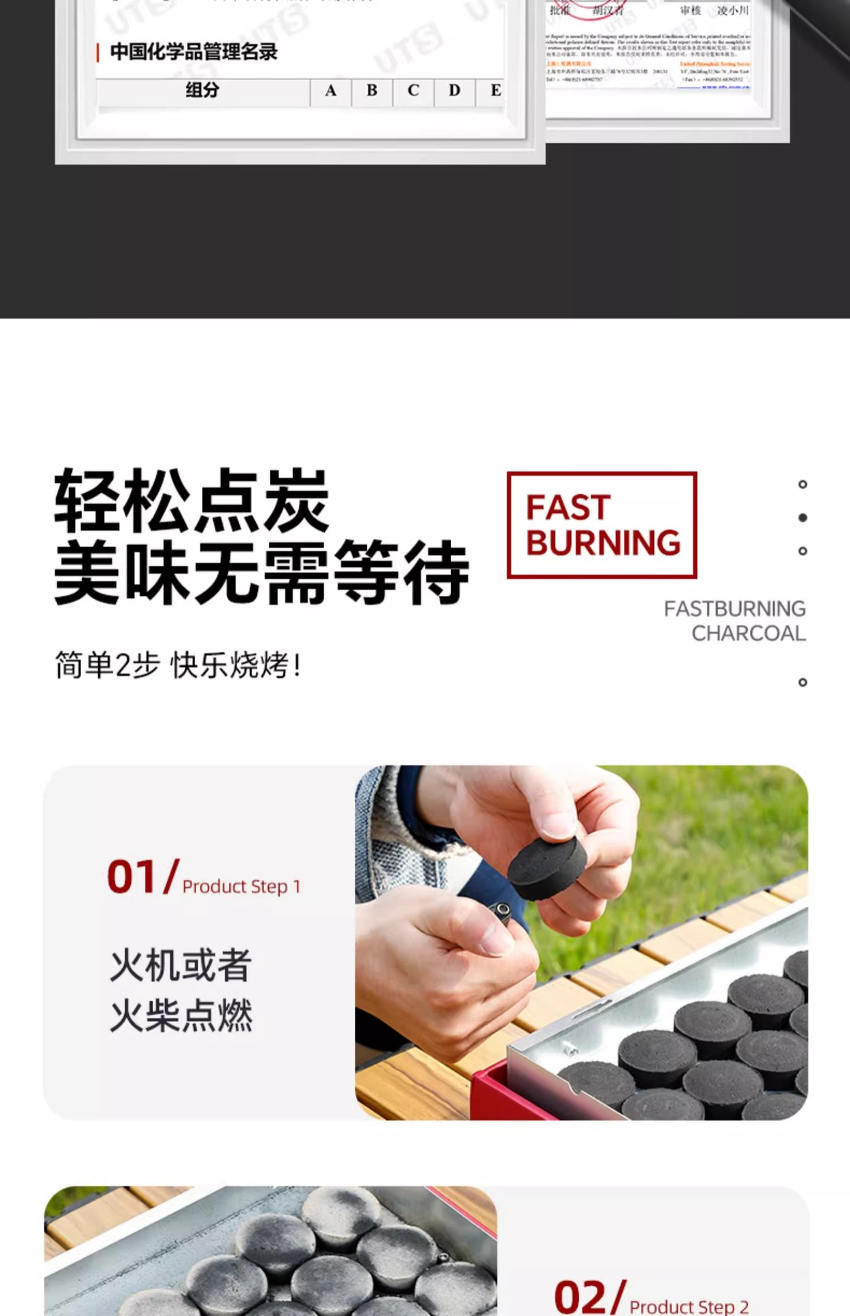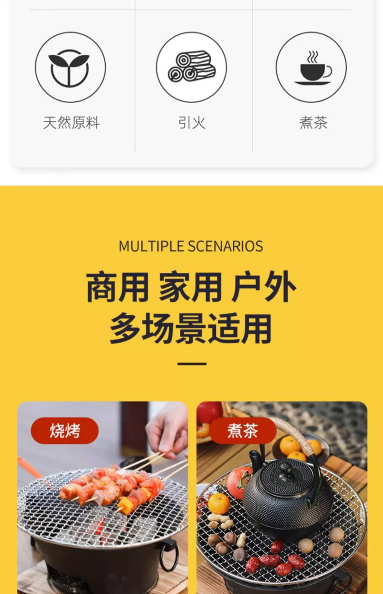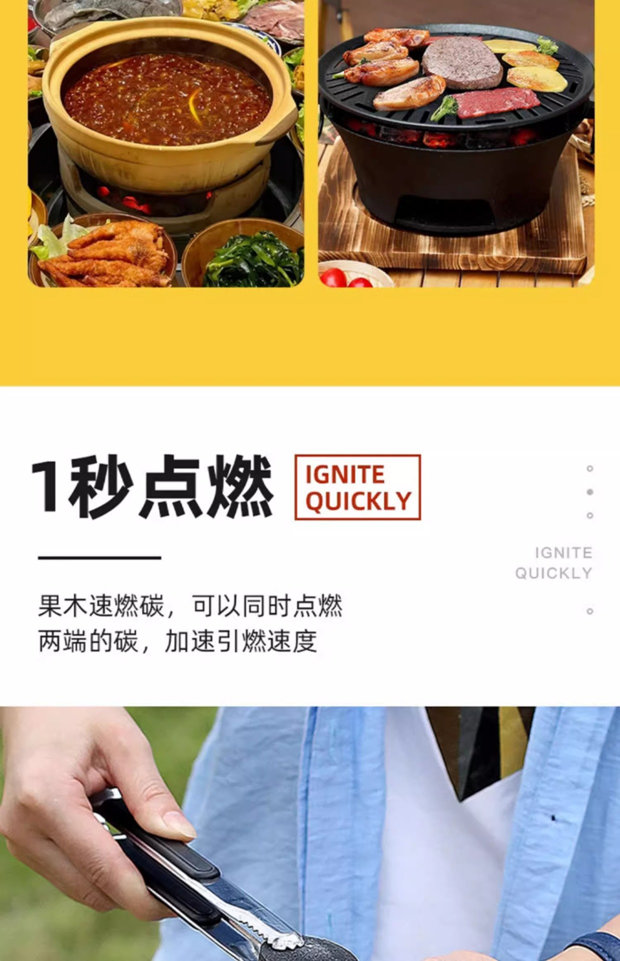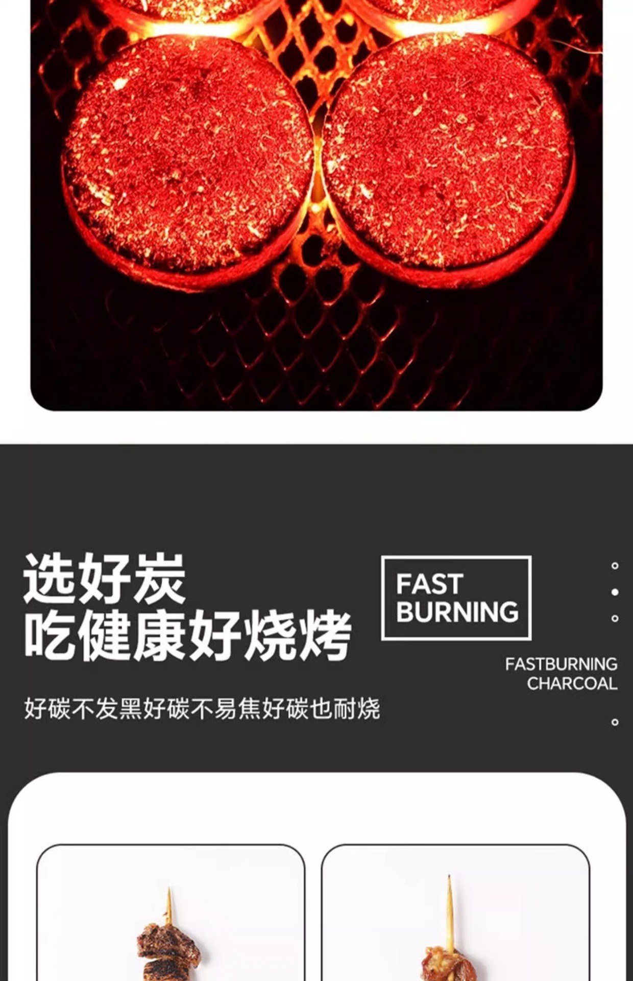 바베큐 탄소 빠르게 연소되는 숯 무연 탄소 석탄 과일 숯 가연성 물 담뱃대 연소 지원 홈 연선 차 대나무 숯스토어 가기