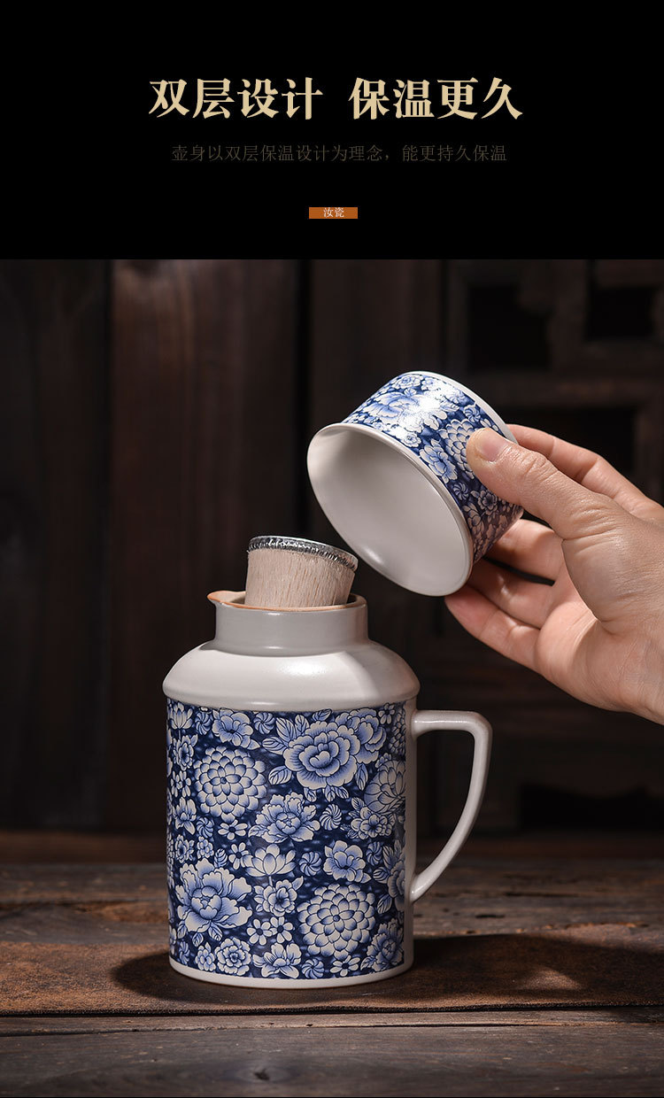단열 작은 보온병 가정용 찻잔 뚜껑 끈끈한 주전자 세라믹 손 따뜻한 차 허브 주전자 찻잔스토어 가기
