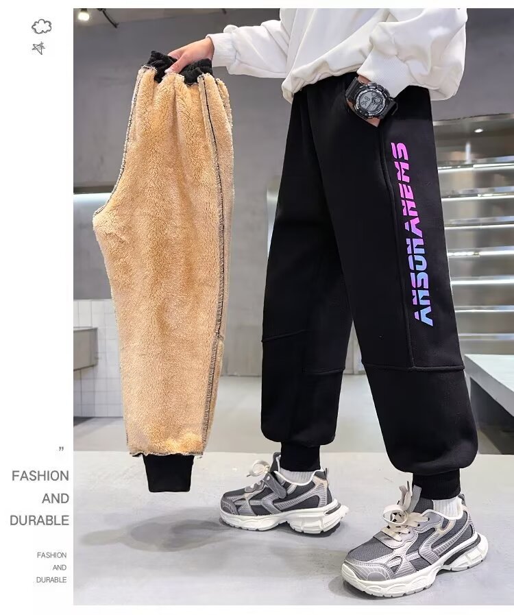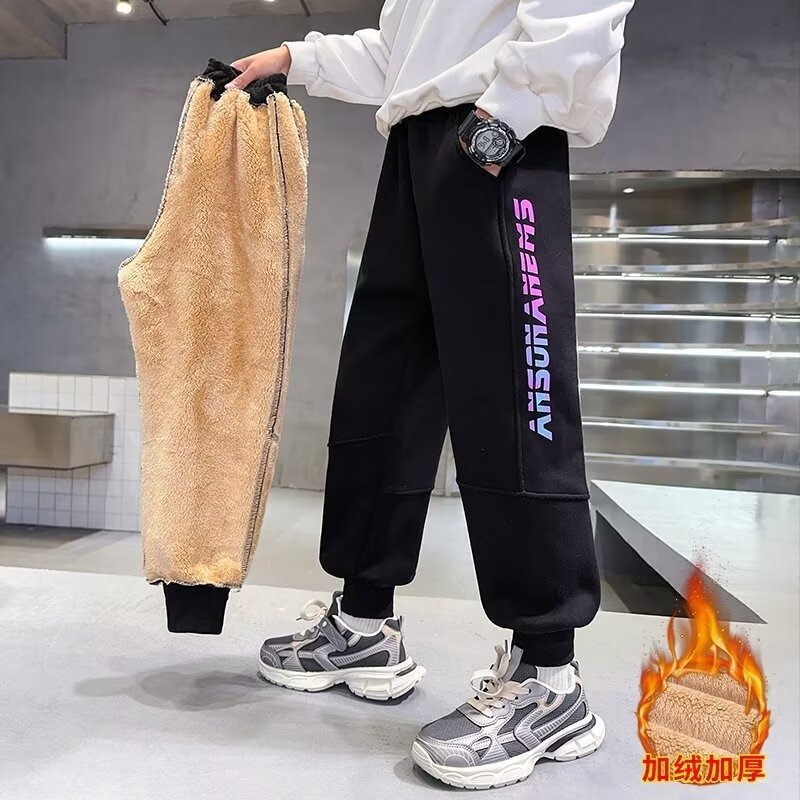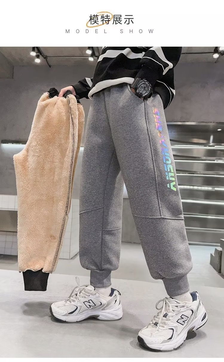 소년 바지 가을과 겨울 의상 어린이 스포츠 바지 겨울 두꺼운 운동복 큰 어린이를위한 가을 및 겨울 바지스토어 가기