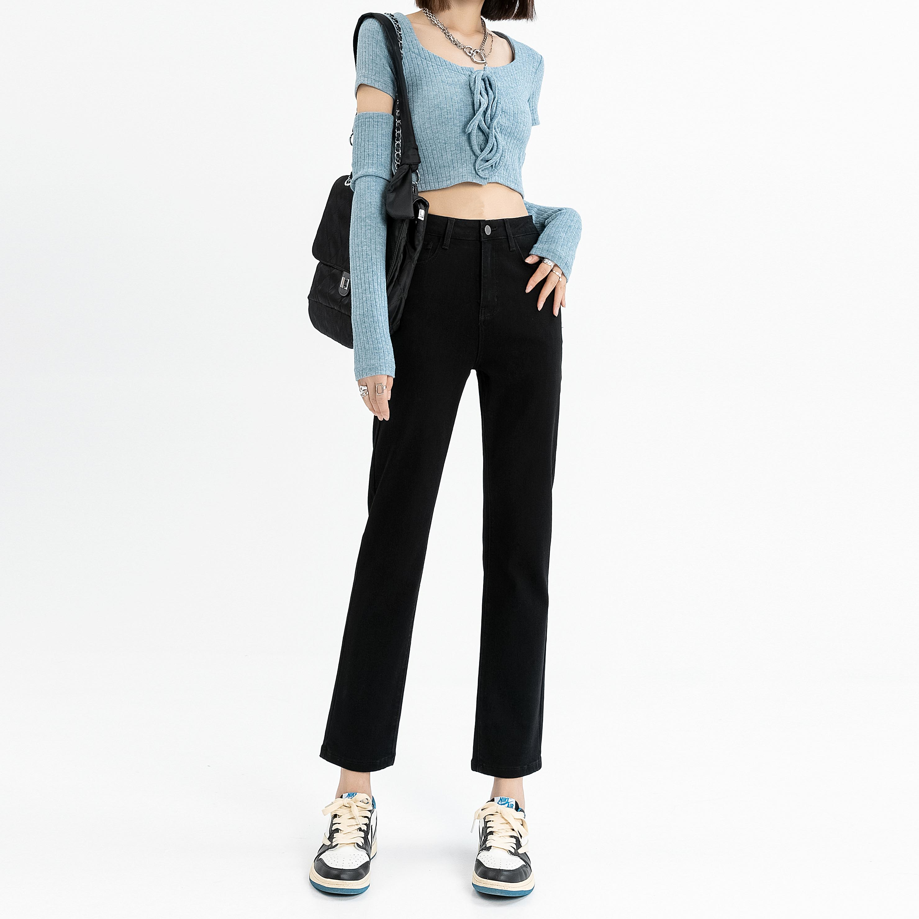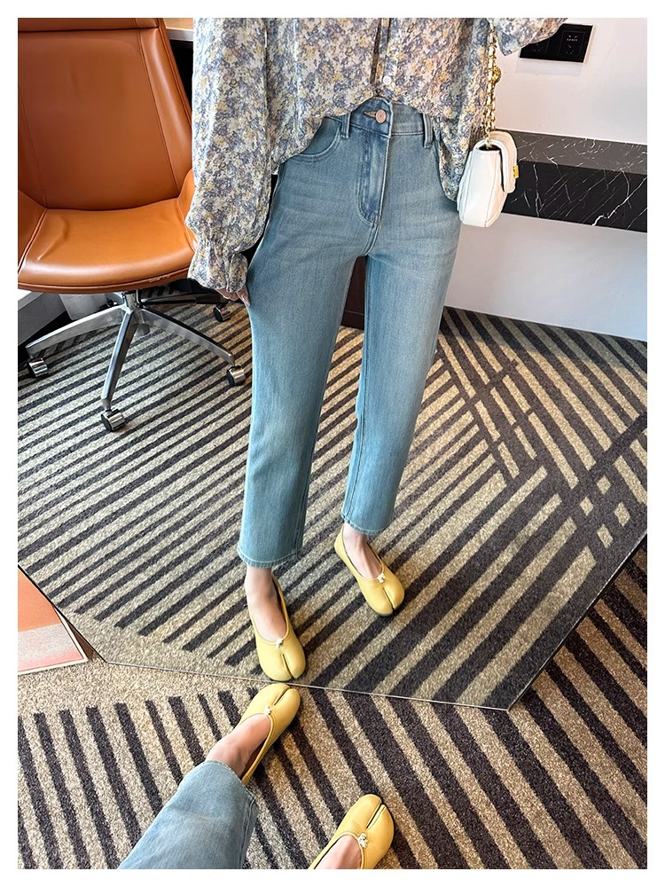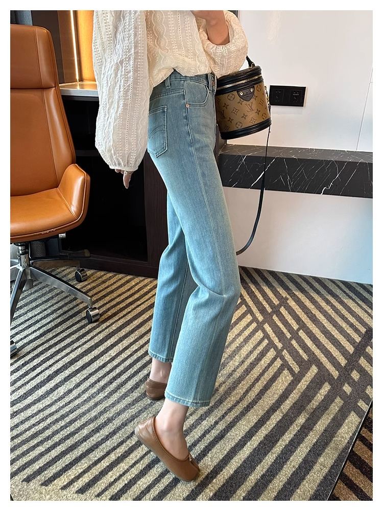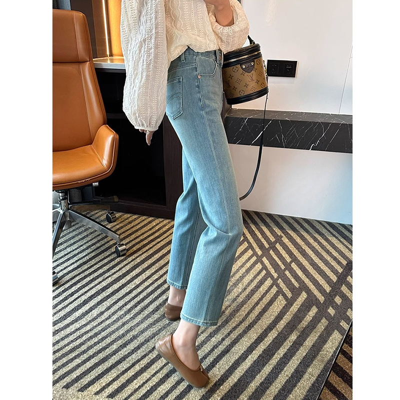 밝은 색상의 바게트 스트레이트 청바지 여성의 2024 여름 얇은 새 스타일 작은 높은 허리 슬리밍 연기 튜브 바지스토어 가기