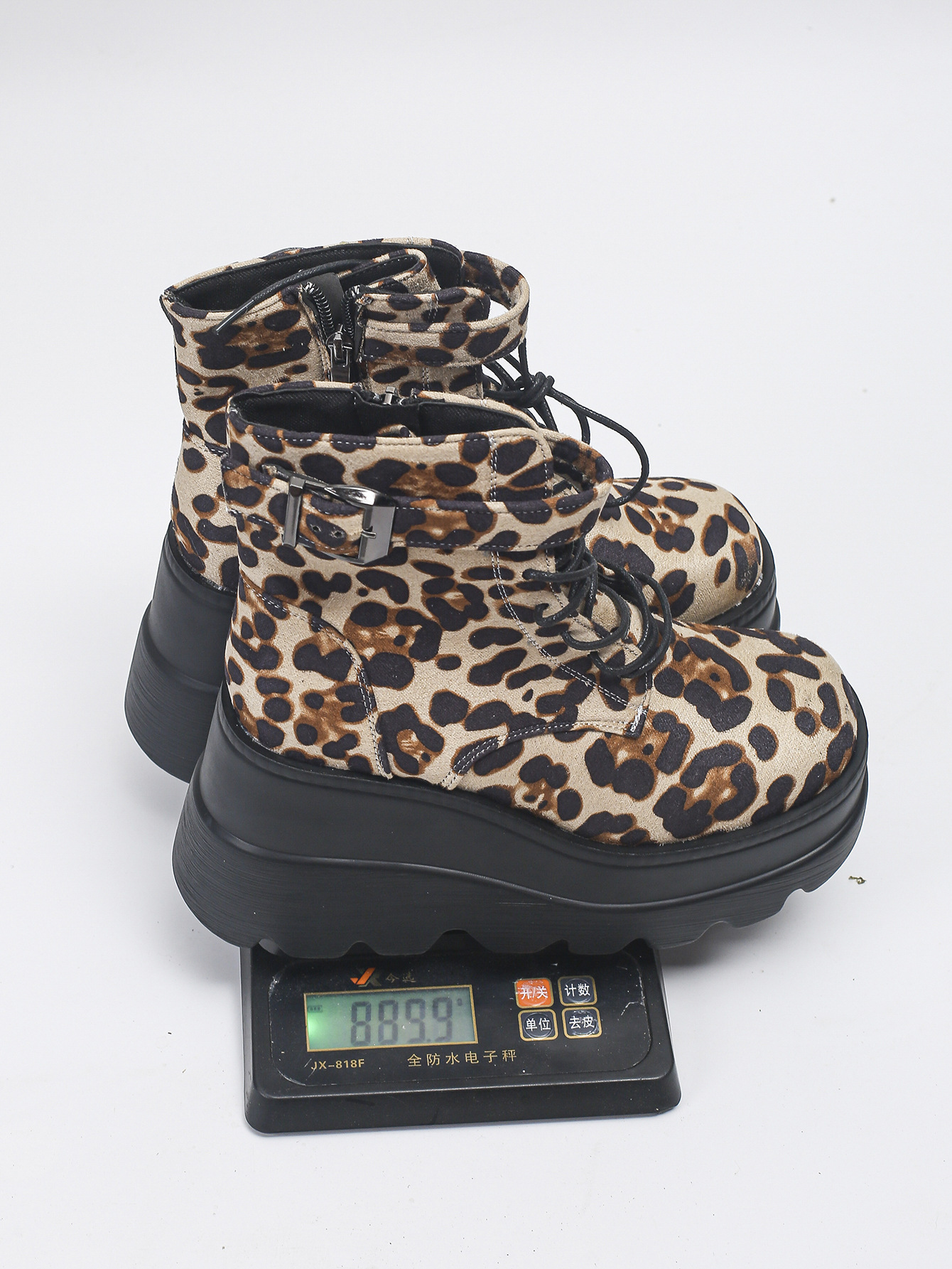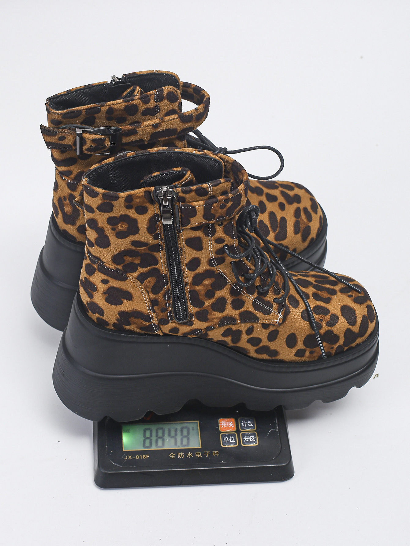 2024 국경 간 여성 부츠 유럽과 미국의 새로운 두꺼운 뒤꿈치 두꺼운 바닥 특허 가죽 마틴 부츠 여성 대외 무역 플러스 사이즈 43 레오파드 무늬 짧은 부츠