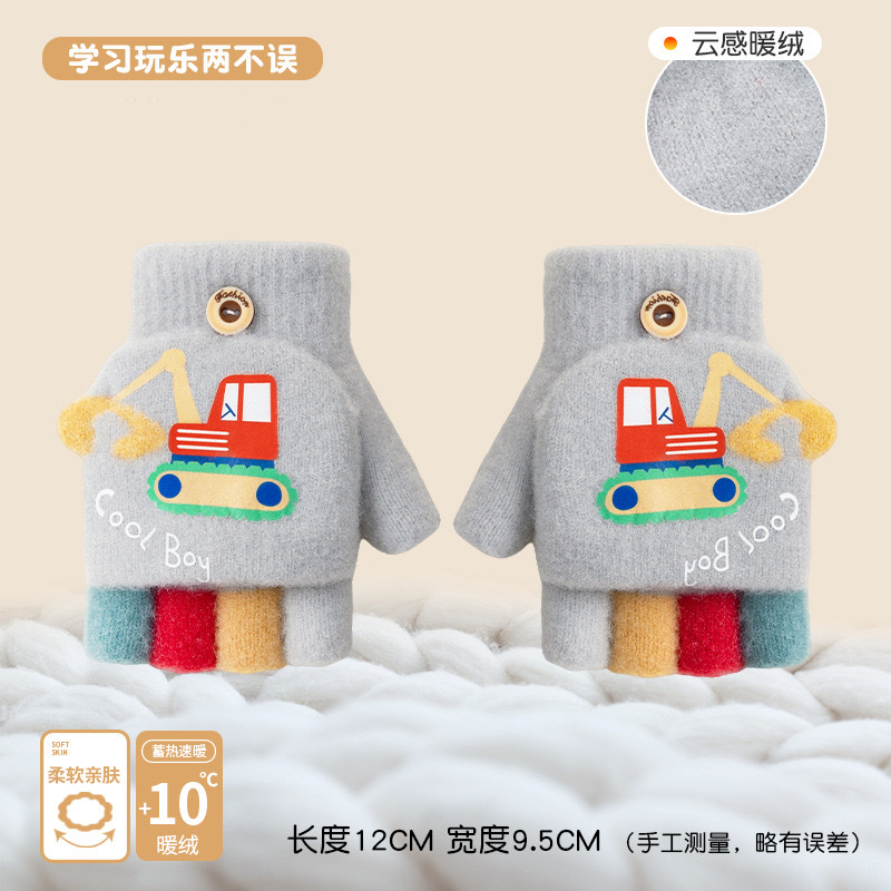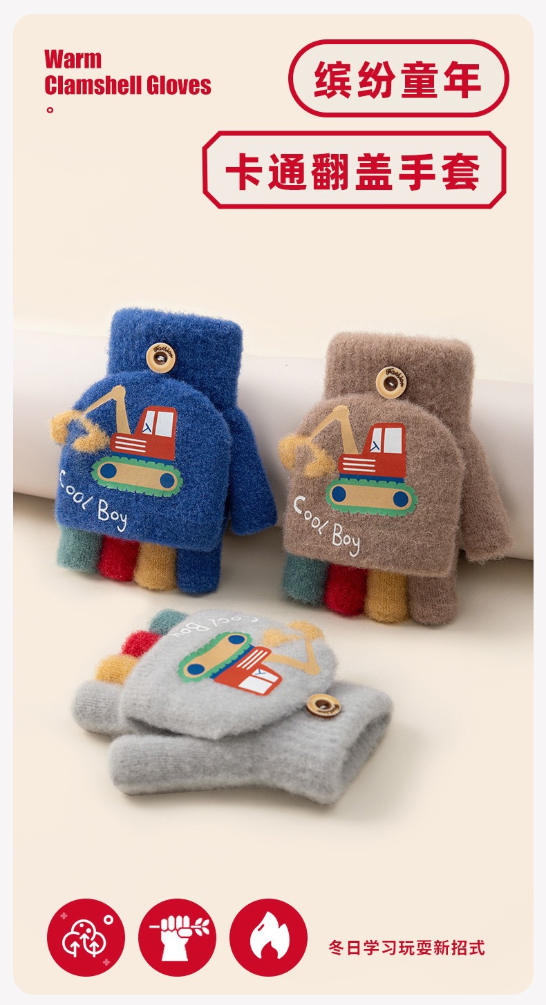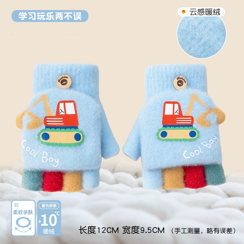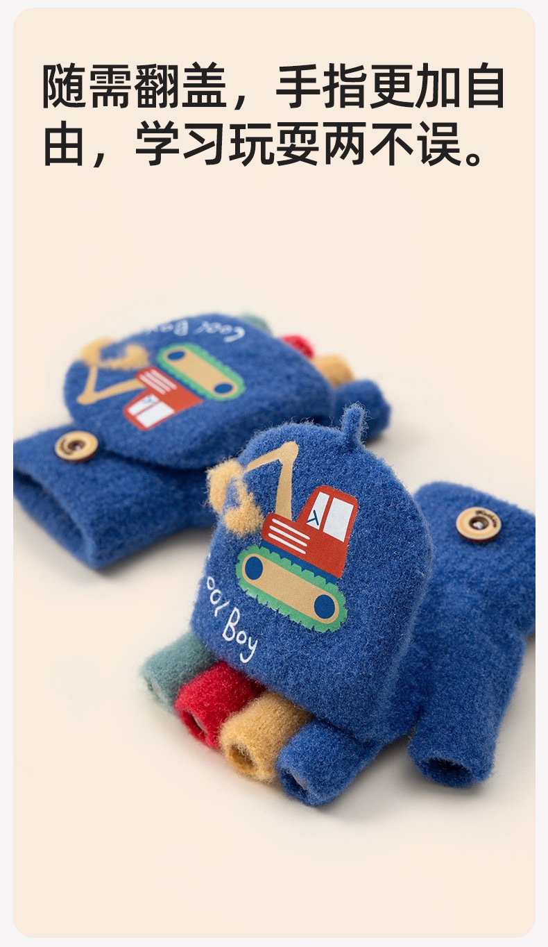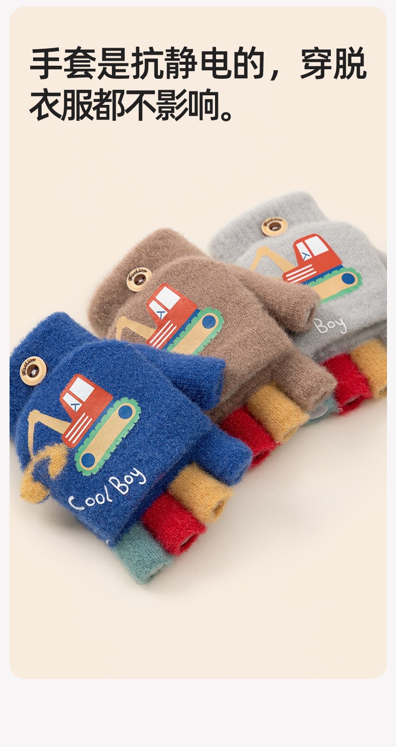 가을과 겨울 따뜻한 니트 울 기모 귀여운 만화 도매 어린이 장갑 반 손가락 오픈 손가락 플랩스토어 가기