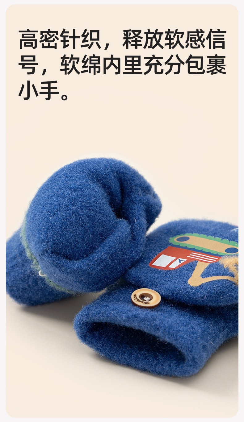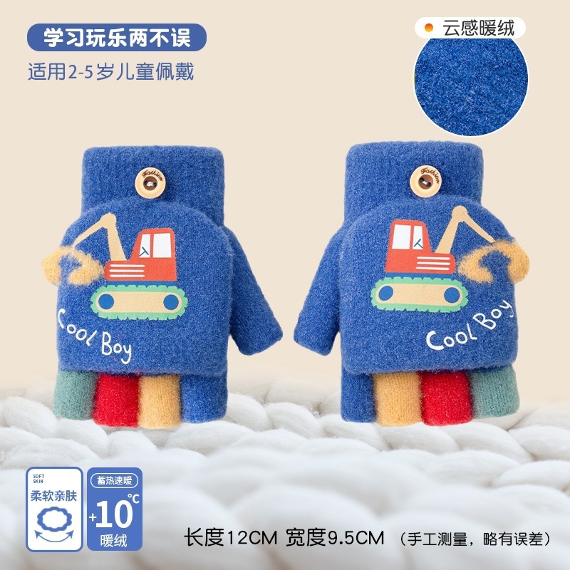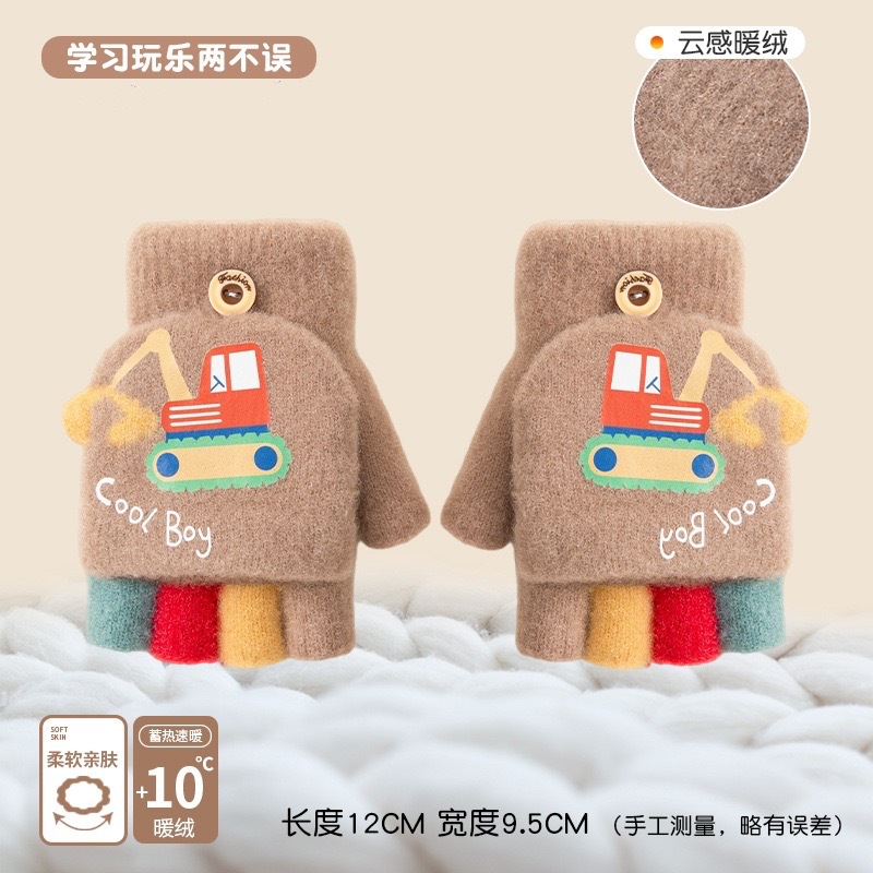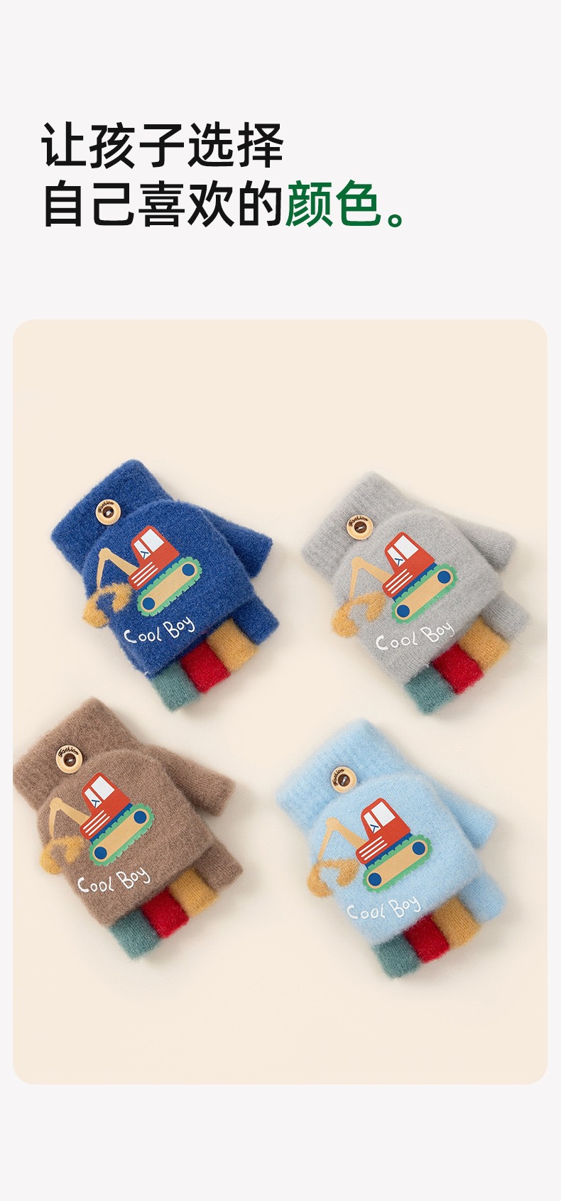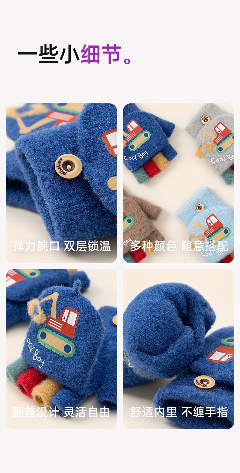 가을과 겨울 따뜻한 니트 울 기모 귀여운 만화 도매 어린이 장갑 반 손가락 오픈 손가락 플랩스토어 가기
