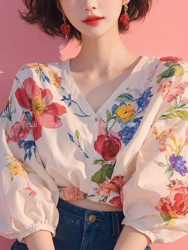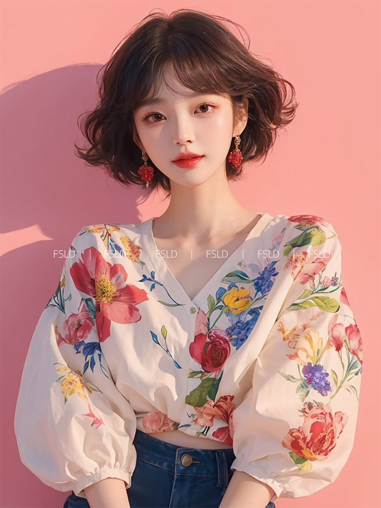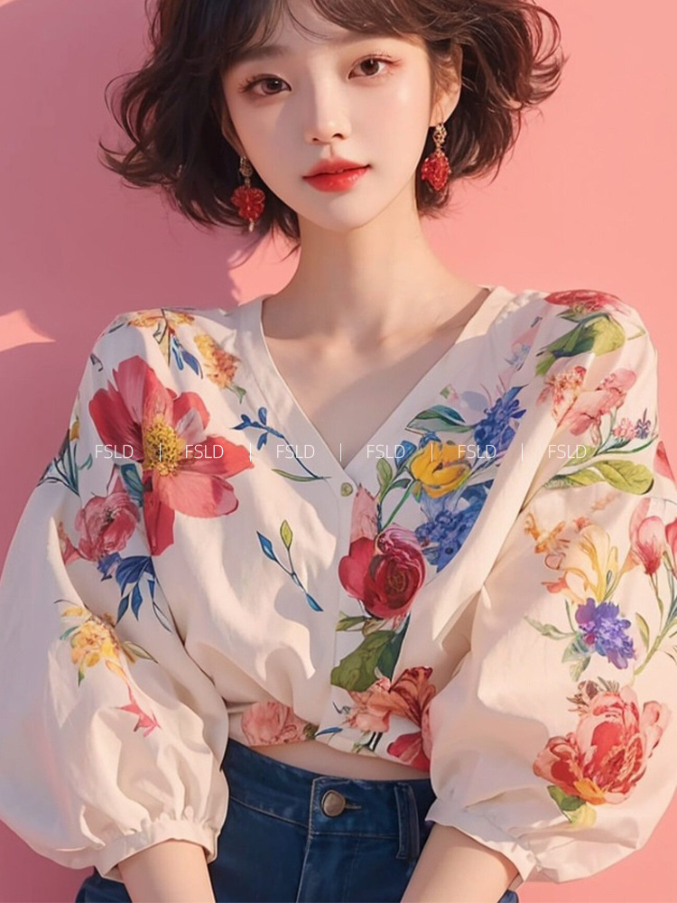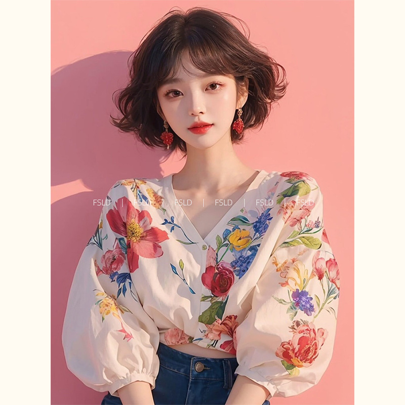 YT362287 올해 인기있는 아름다운 작은 셔츠 프랑스 아름다운 작은 셔츠 꽃 거품 소매 셔츠 2024 새로운스토어 가기