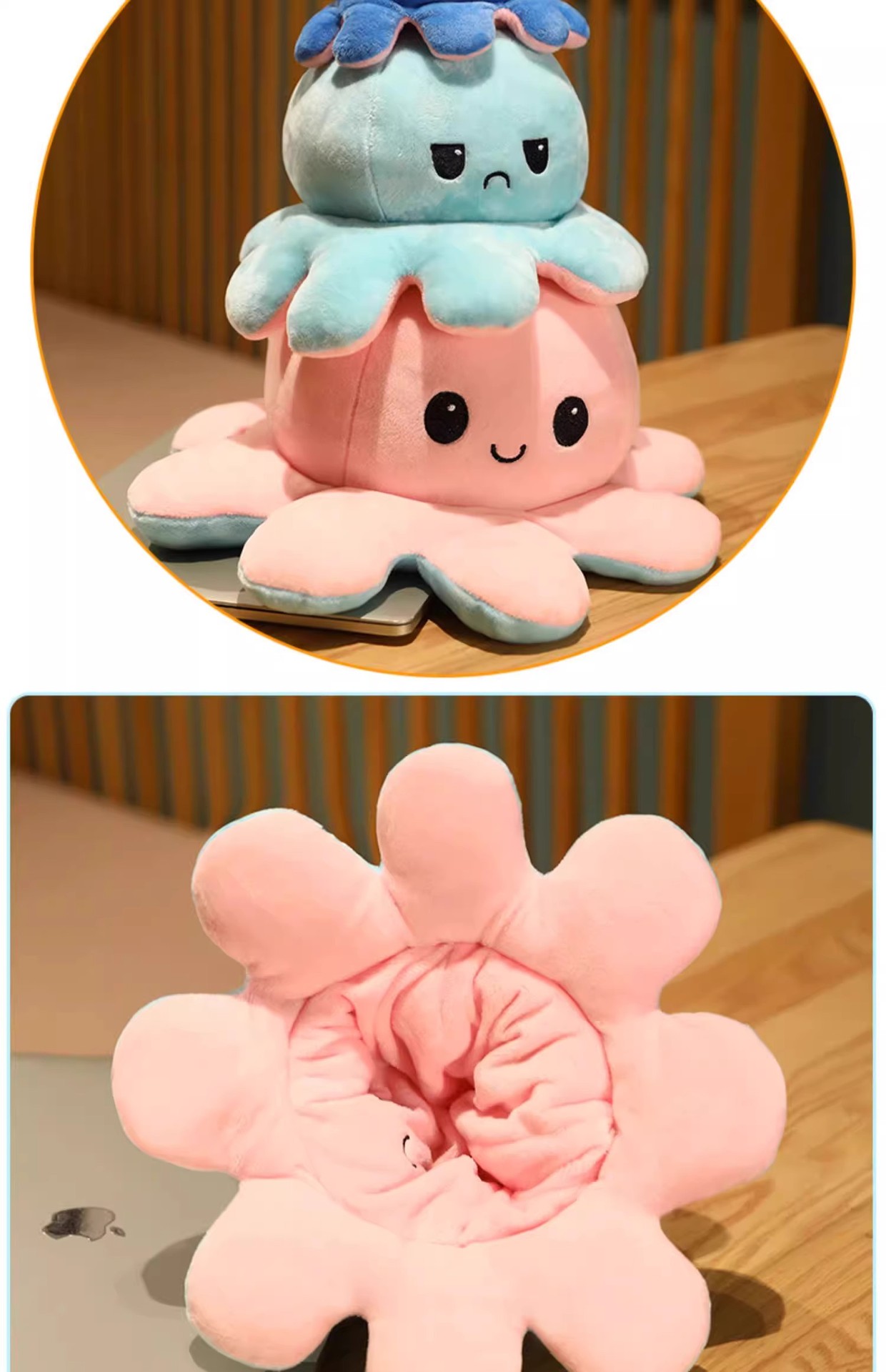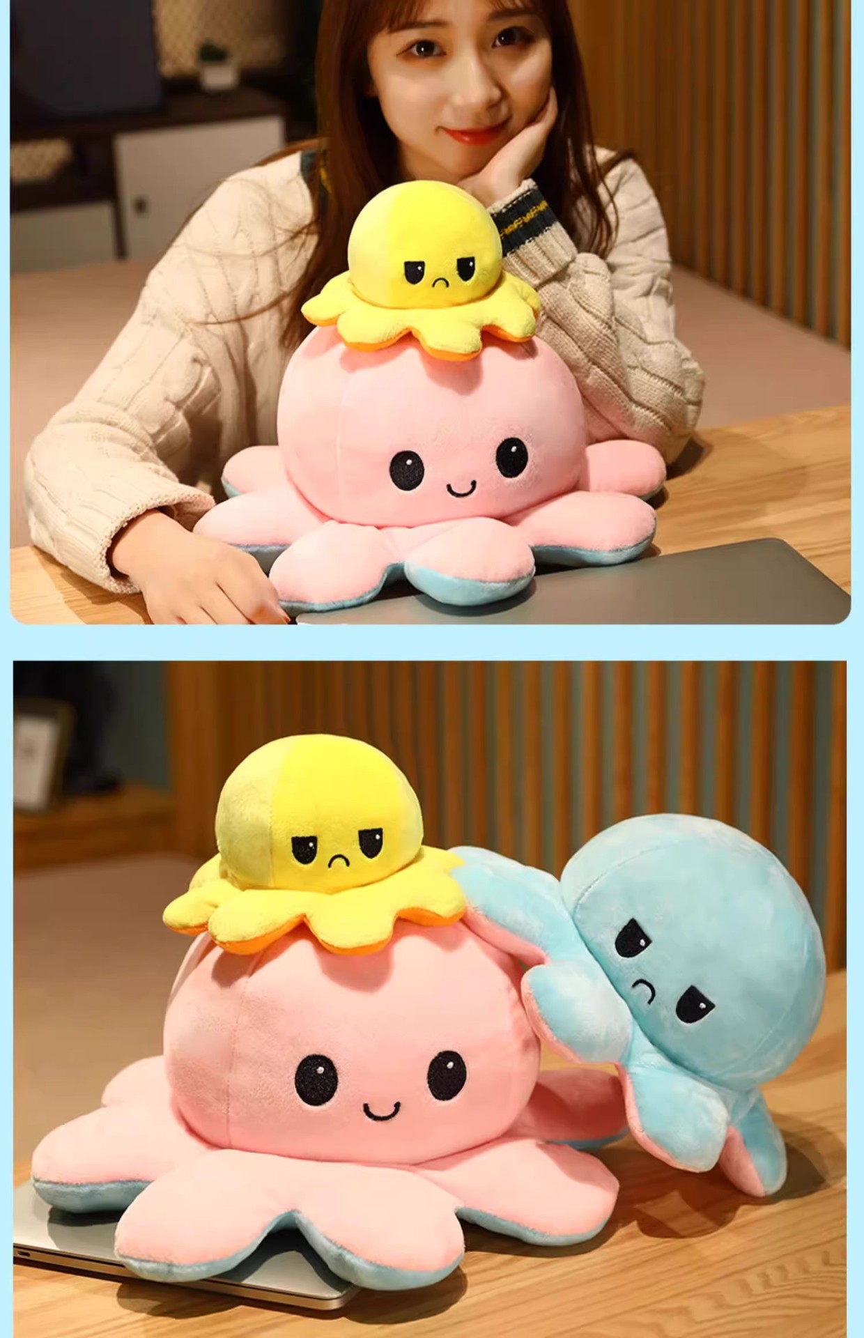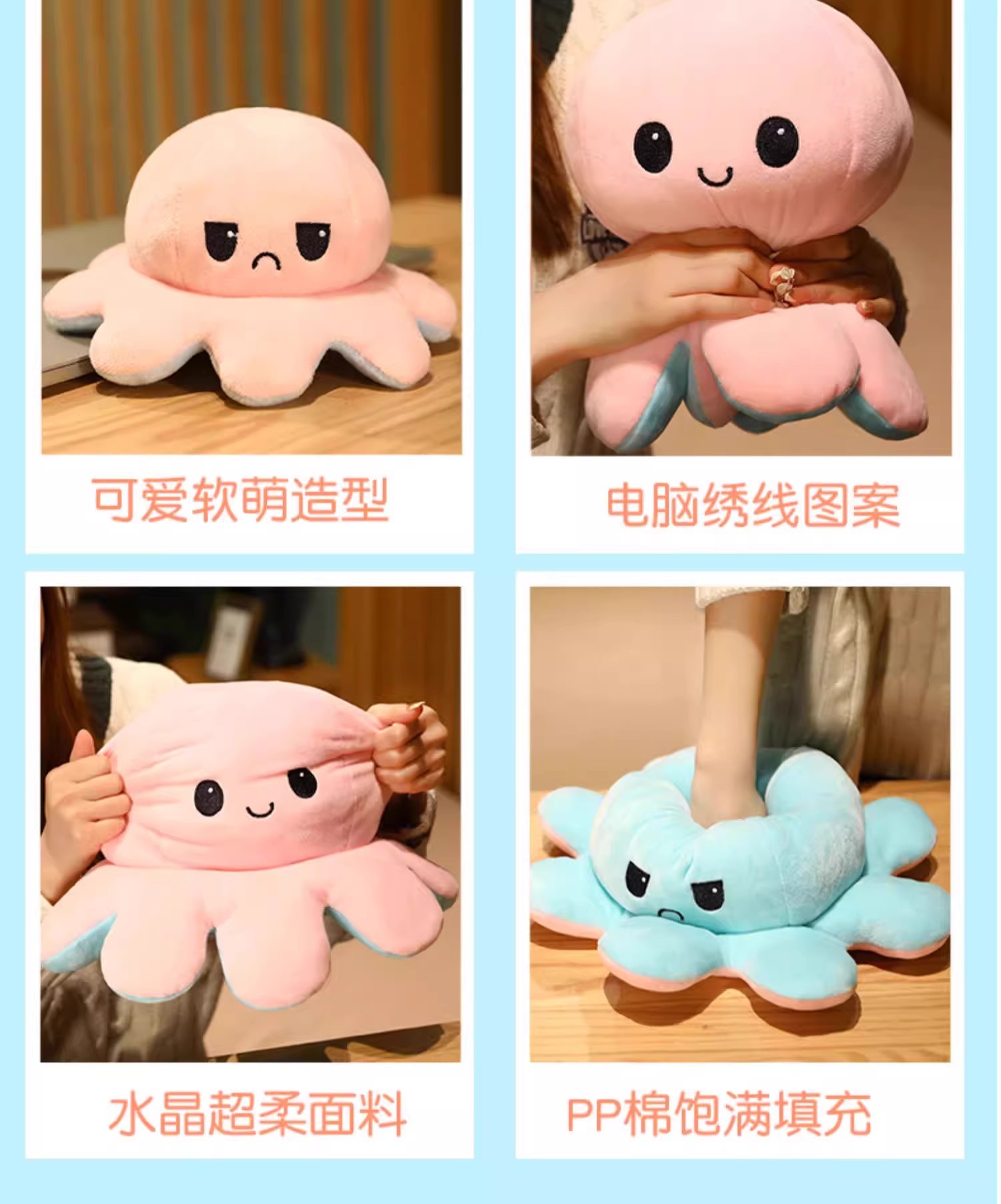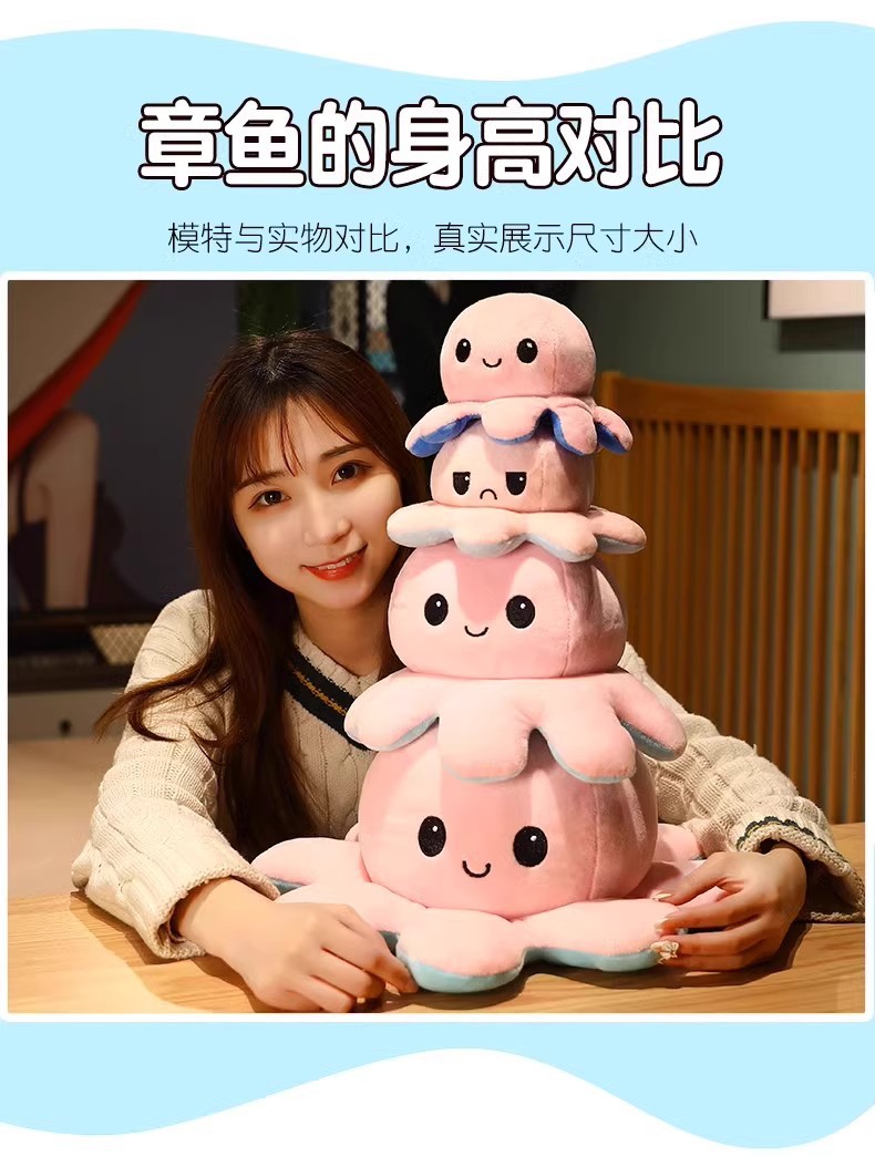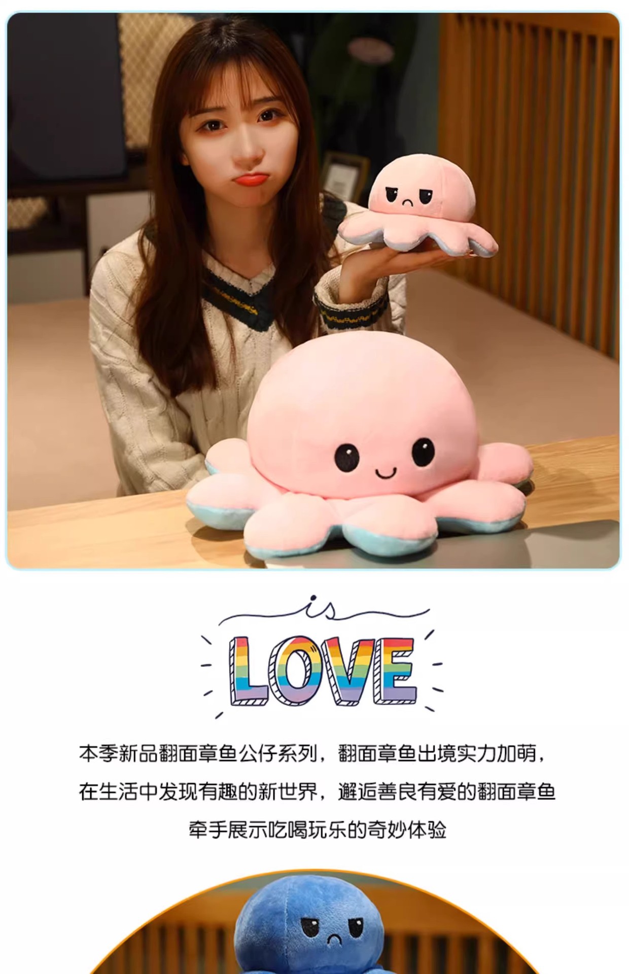 얼굴을 바꾸는 문어 인형 양면 플립 온 표현 인형 봉제 장난감 잠자는 베개 여성 생일 선물