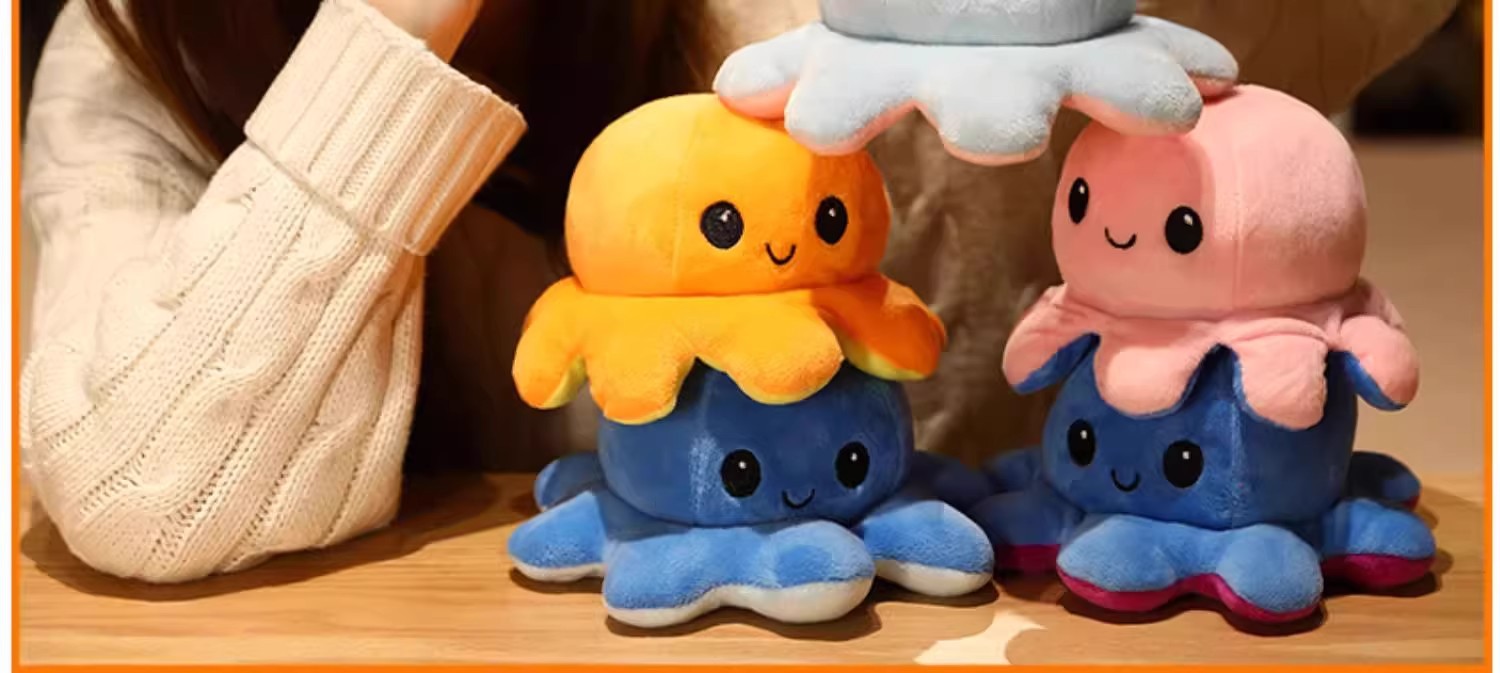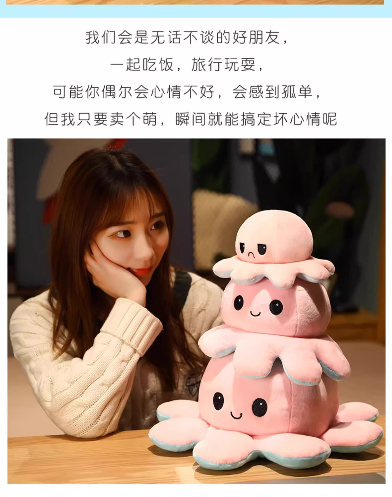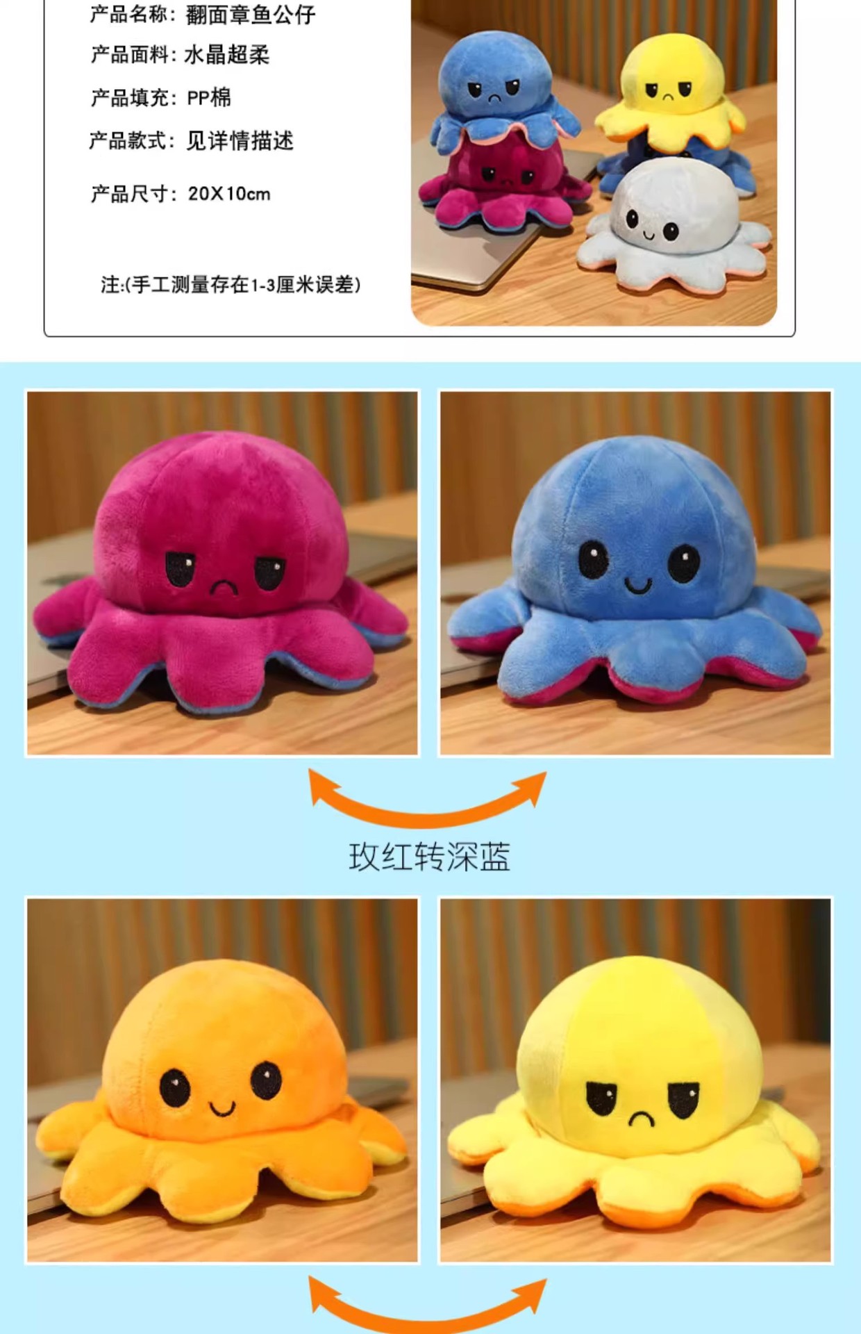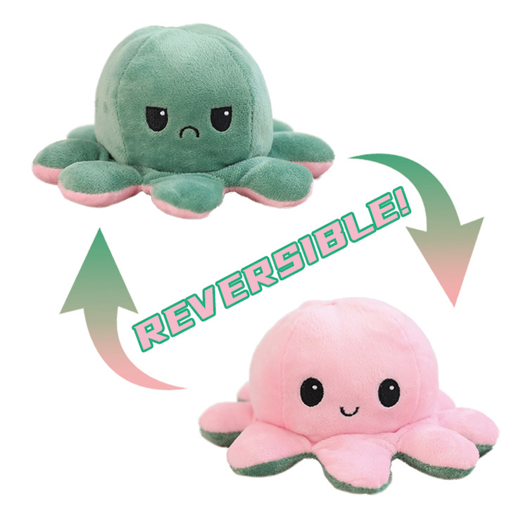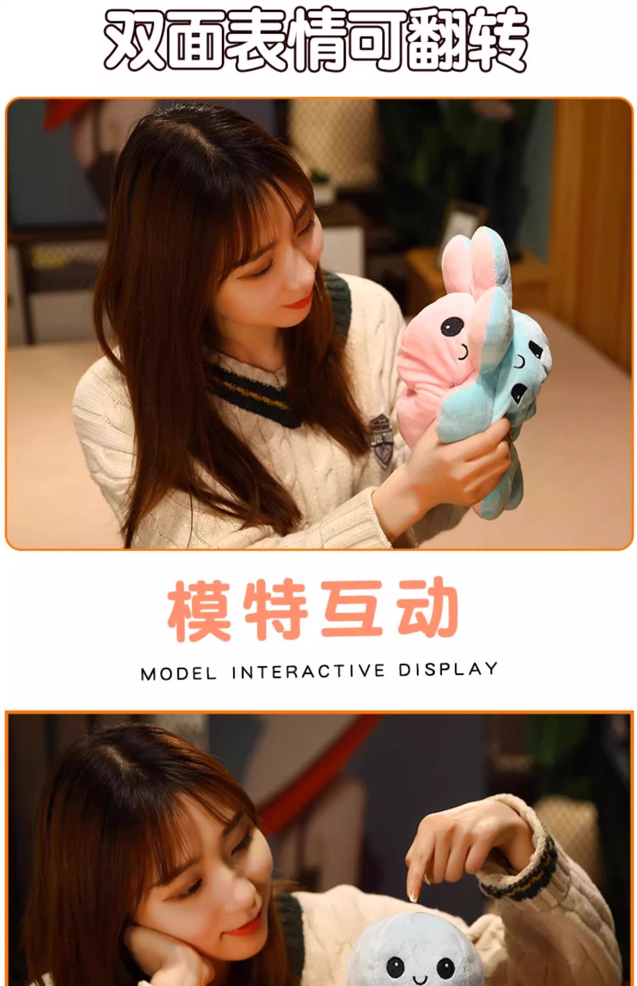 얼굴을 바꾸는 문어 인형 양면 플립 온 표현 인형 봉제 장난감 잠자는 베개 여성 생일 선물