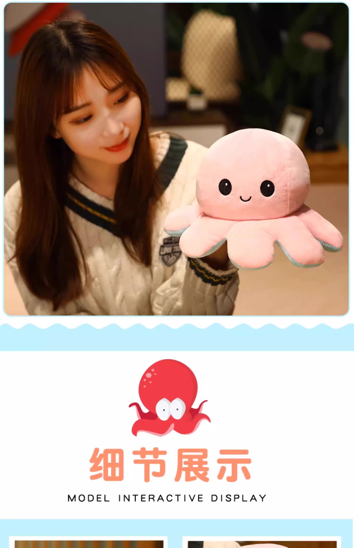 얼굴을 바꾸는 문어 인형 양면 플립 온 표현 인형 봉제 장난감 잠자는 베개 여성 생일 선물스토어 가기