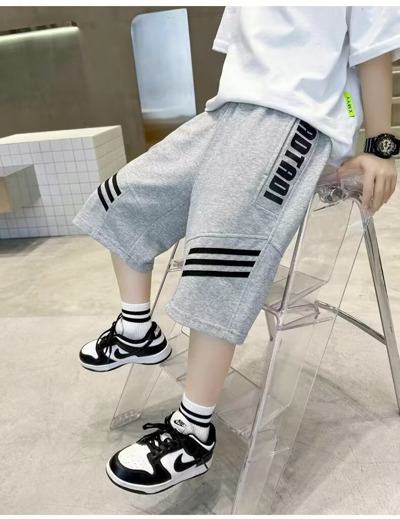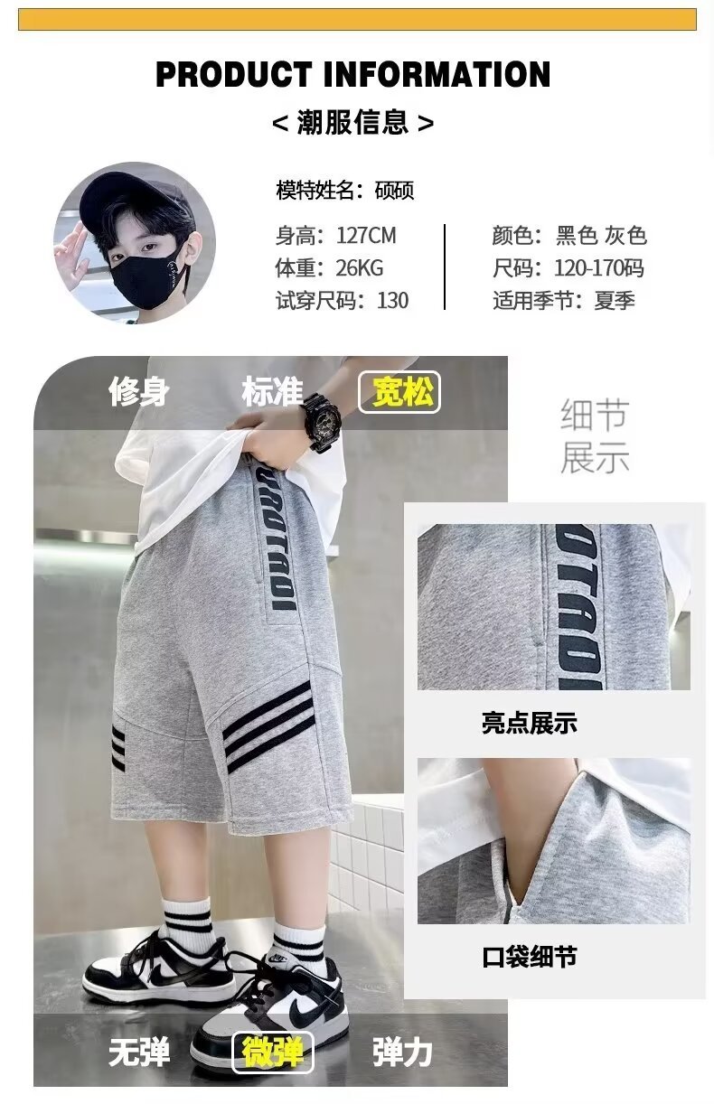 P18-DR19 어린이 의류면 실크 반바지 회색 검정 110-170