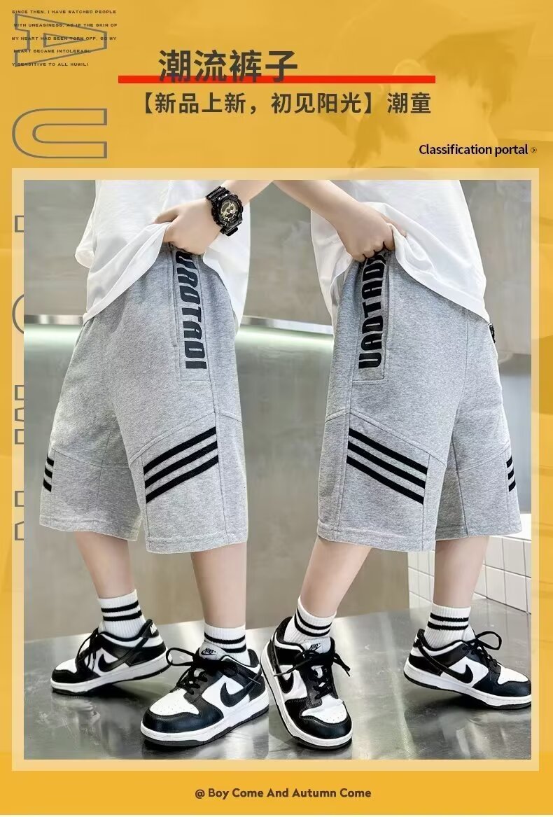 P18-DR19 어린이 의류면 실크 반바지 회색 검정 110-170스토어 가기