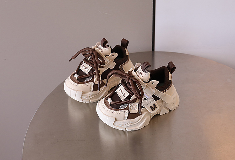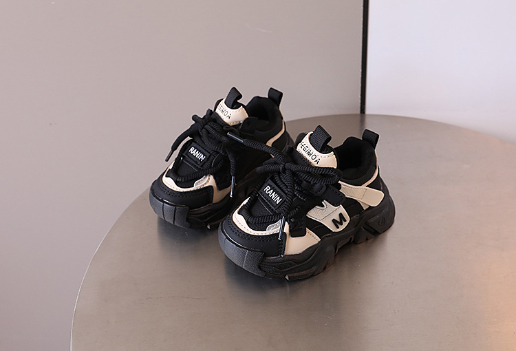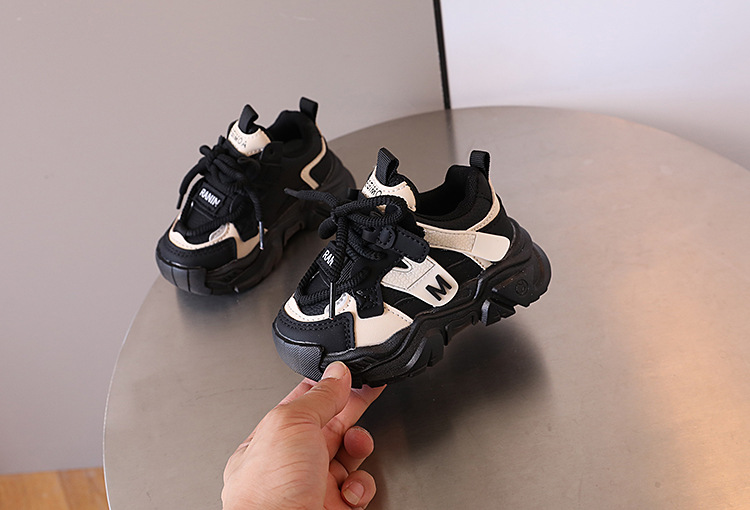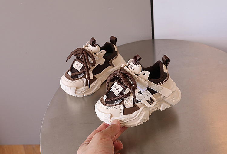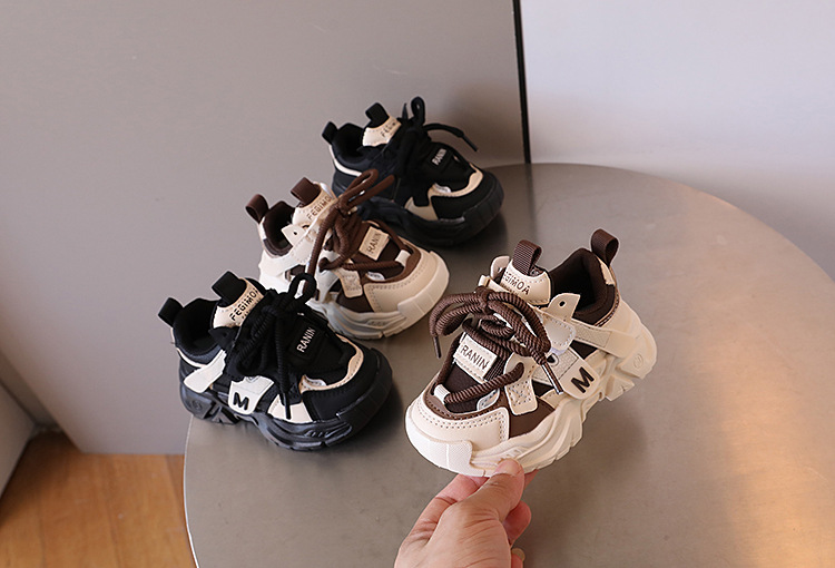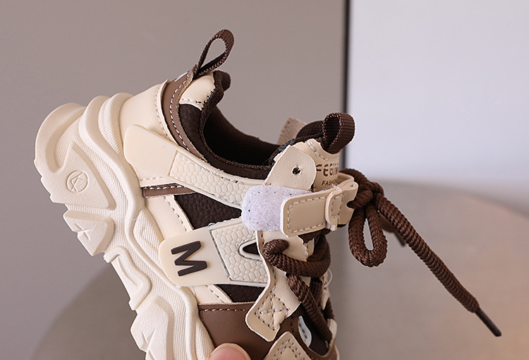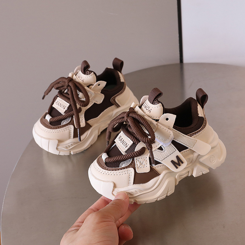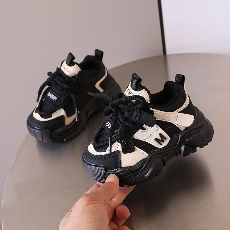 2024 년 가을 어린이 잘 생긴 컬러 블록 가죽 운동화 남자 토레 신발 한국 스타일 소녀 경량 러닝화스토어 가기