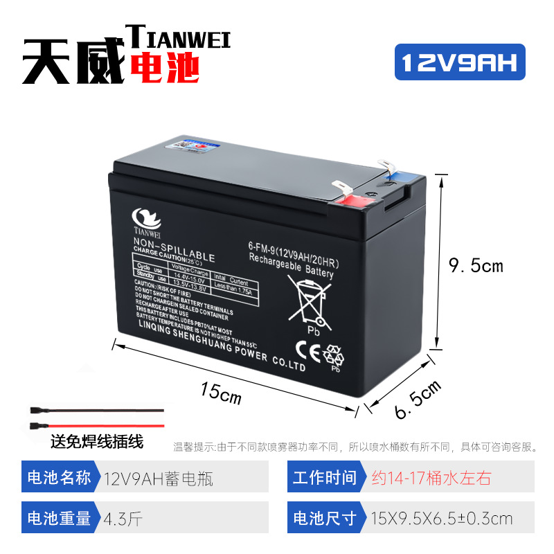 • 업그레이드된 12v9ah 고품질 납산 배터리는 20배럴의 물을 펌핑할 수 있습니다.