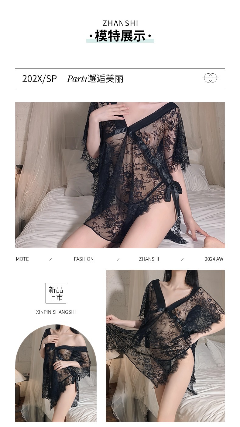 새로운 레이스 투명한 섹시한 유혹 플러스 사이즈 느슨한 레이스 세트 파자마 나이트 드레스 란제리 여성 유니폼스토어 가기
