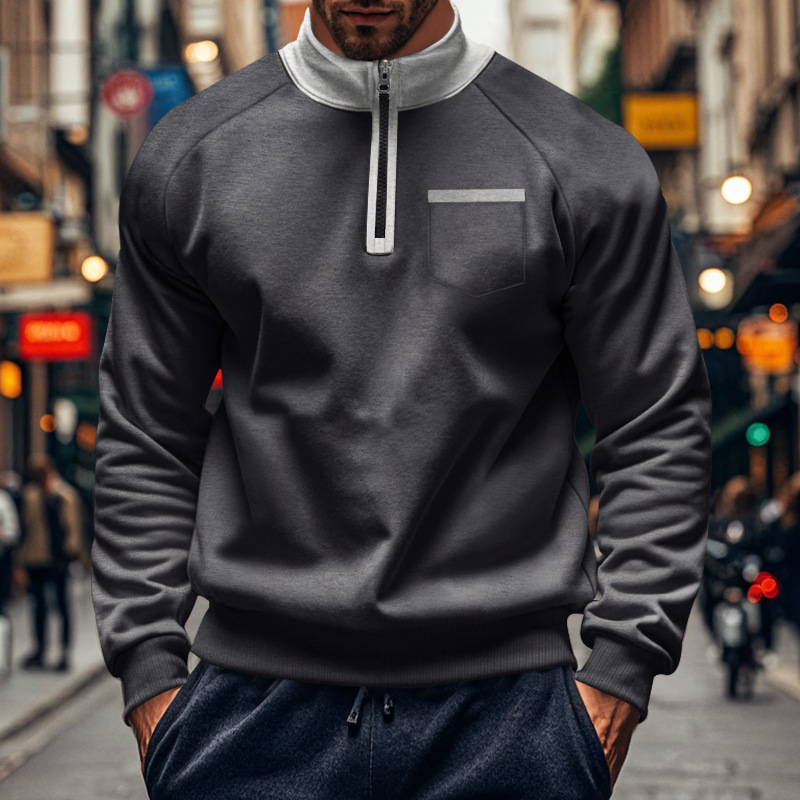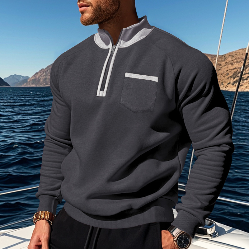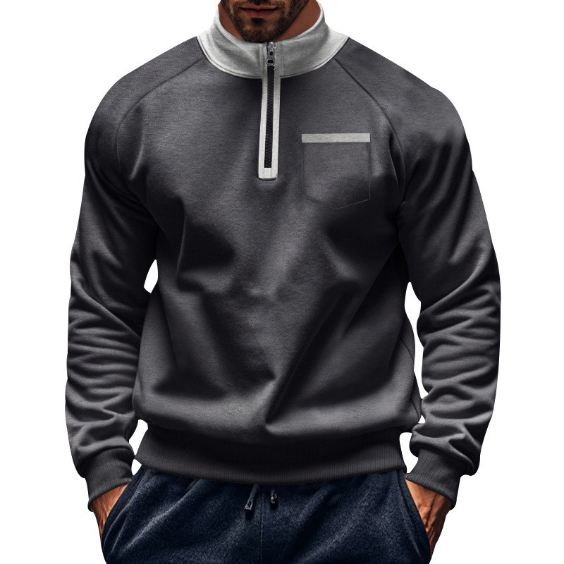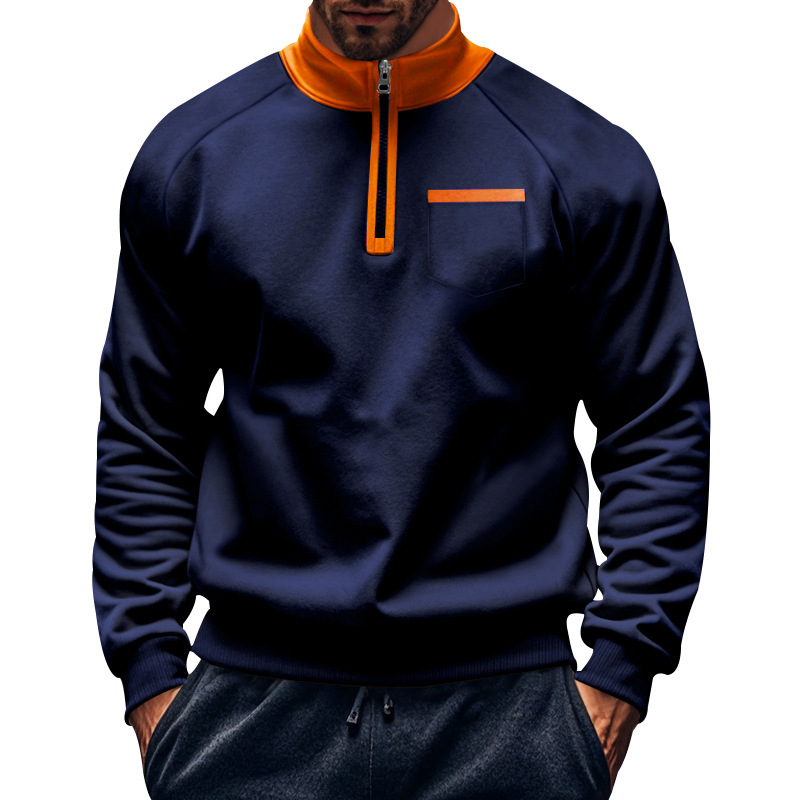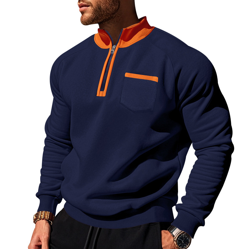 크로스 보더 스웨트 셔츠 남성 가을, 겨울 스탠드 칼라 하프 지퍼 컬러 차단 포켓 플러스 벨벳 루즈 남성 스웨트 셔츠 하이 엔드 탑스토어 가기