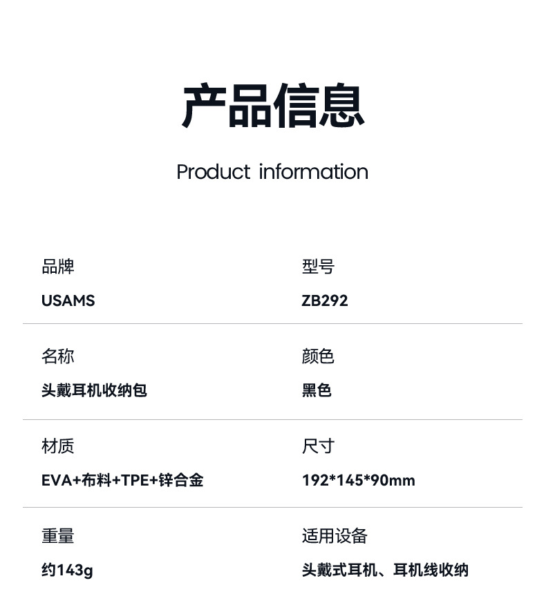USAMS 대형 헤드폰 가방 휴대용 헤드셋 전화 저장 가방 접는 블루투스 헤드셋 저장 상자스토어 가기