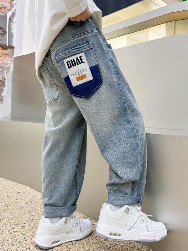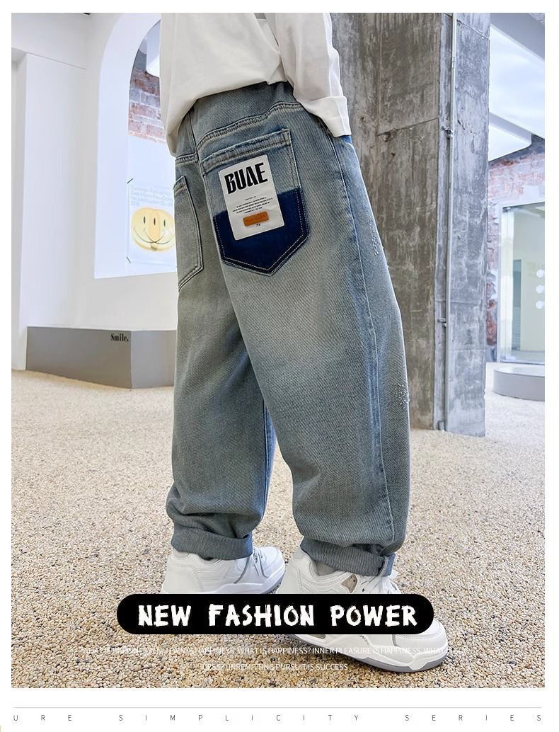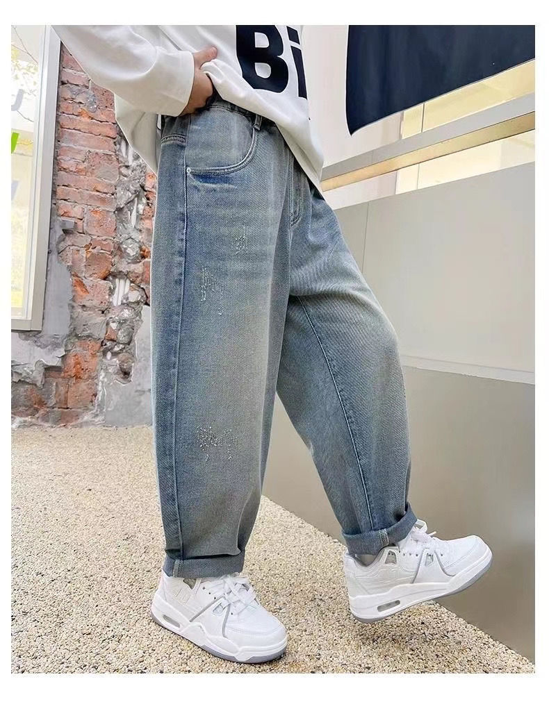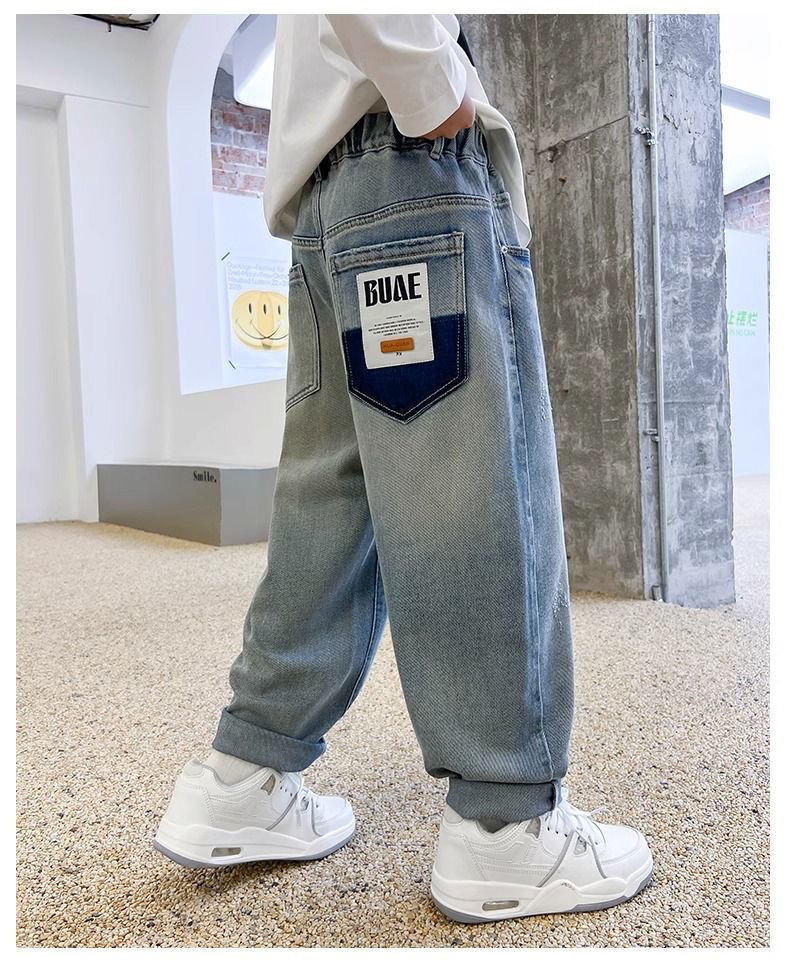 봄과 가을 소년의 하이 퀄리티 청바지 진짜 가방 헤지 랩 패션 잘 생긴 어린이 바지 외복스토어 가기