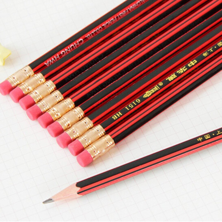 중화 브랜드 6151 초등학교 학생을위한 고무 헤드가있는 연필 HB 로그 육각형 펜 시험 초급 어린이