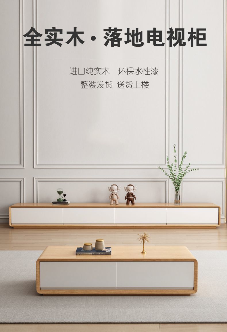 바닥 TV 캐비닛 간단한 현대 미니멀리스트 일본 스타일 로그 색상 작은 아파트 거실 바닥 캐비닛 TV 캐비닛 풀 솔리드 우드스토어 가기