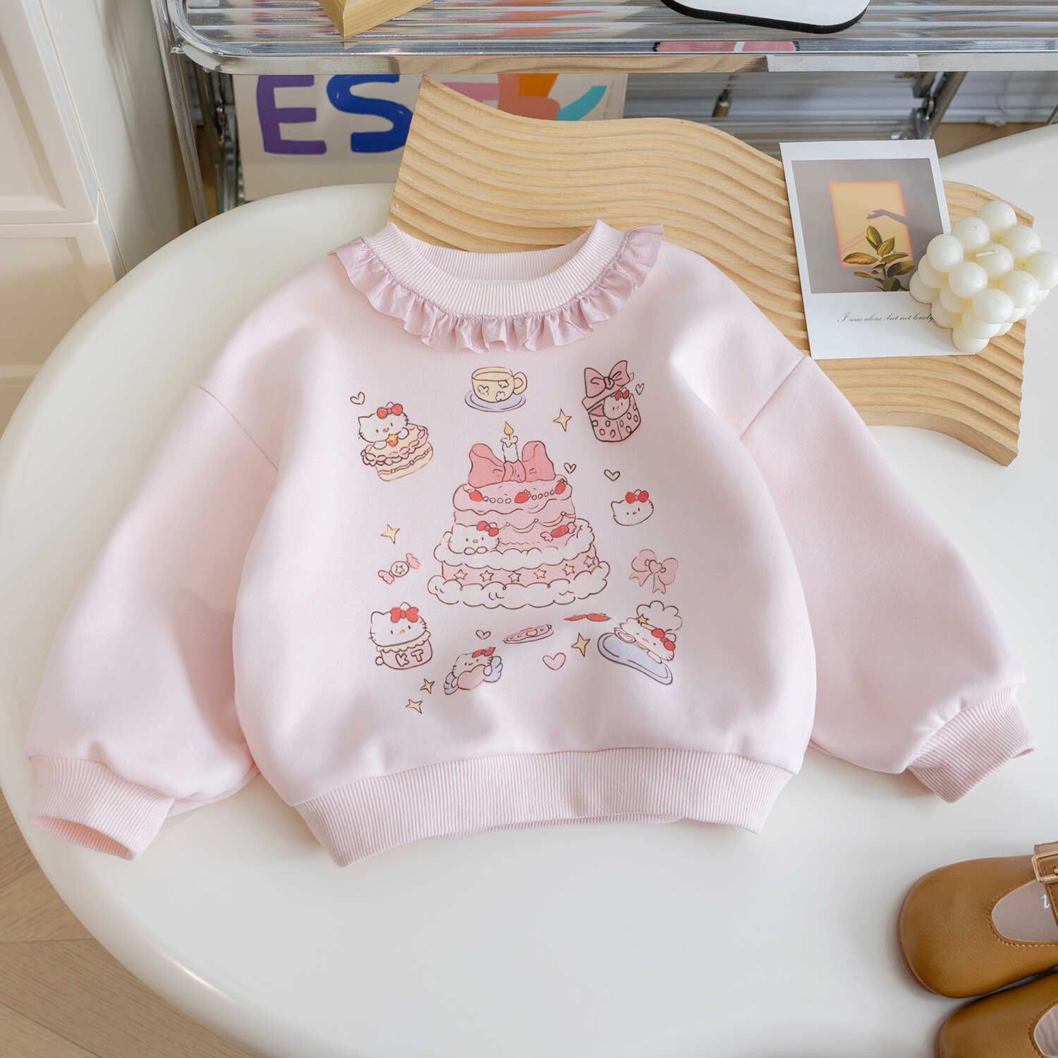 여아용 2025 가을 스웨트셔츠, 세련된 아동용 레이스 핑크 상의, 여자 아기 달콤하고 트렌디한 공주 스타일