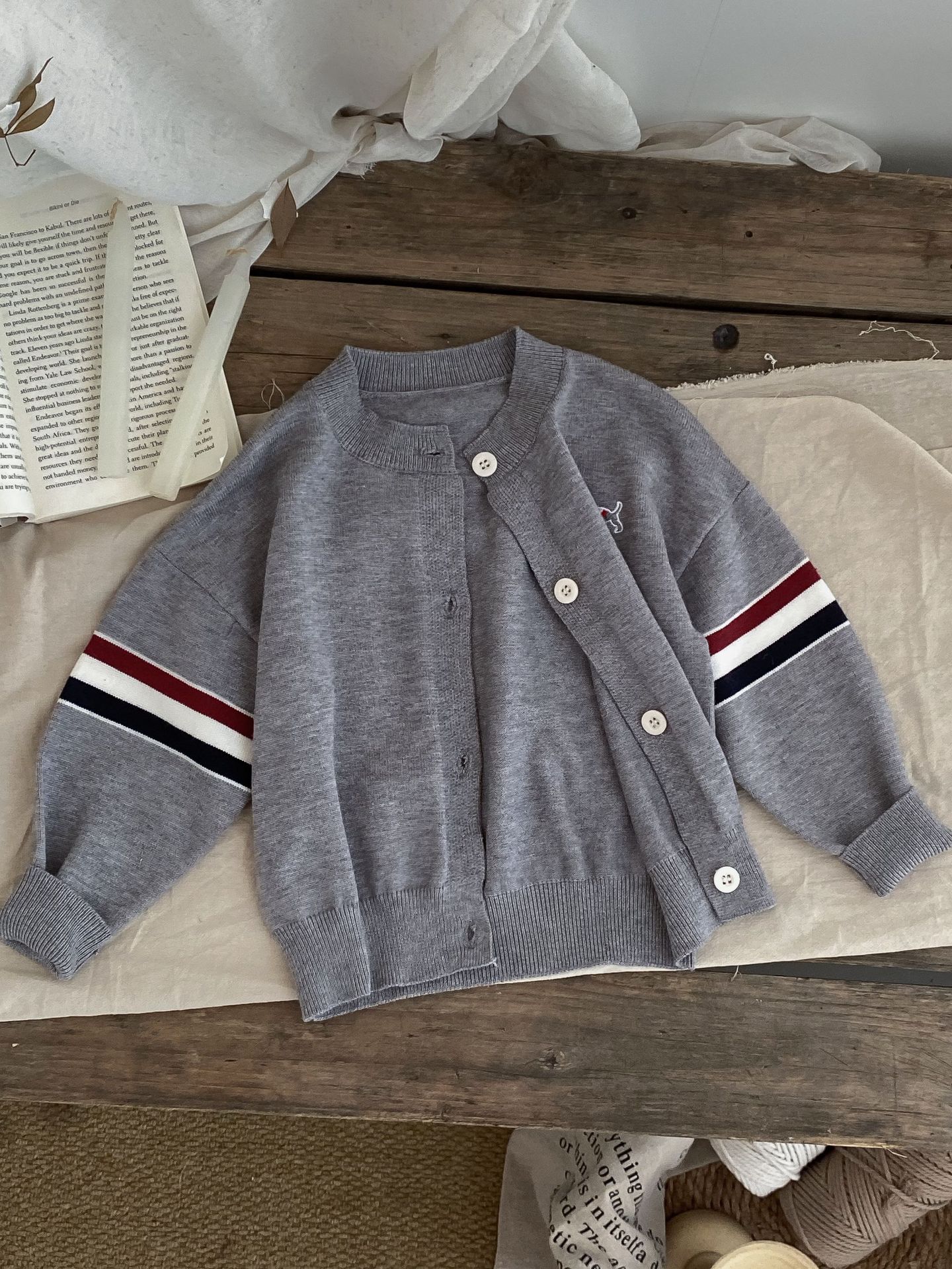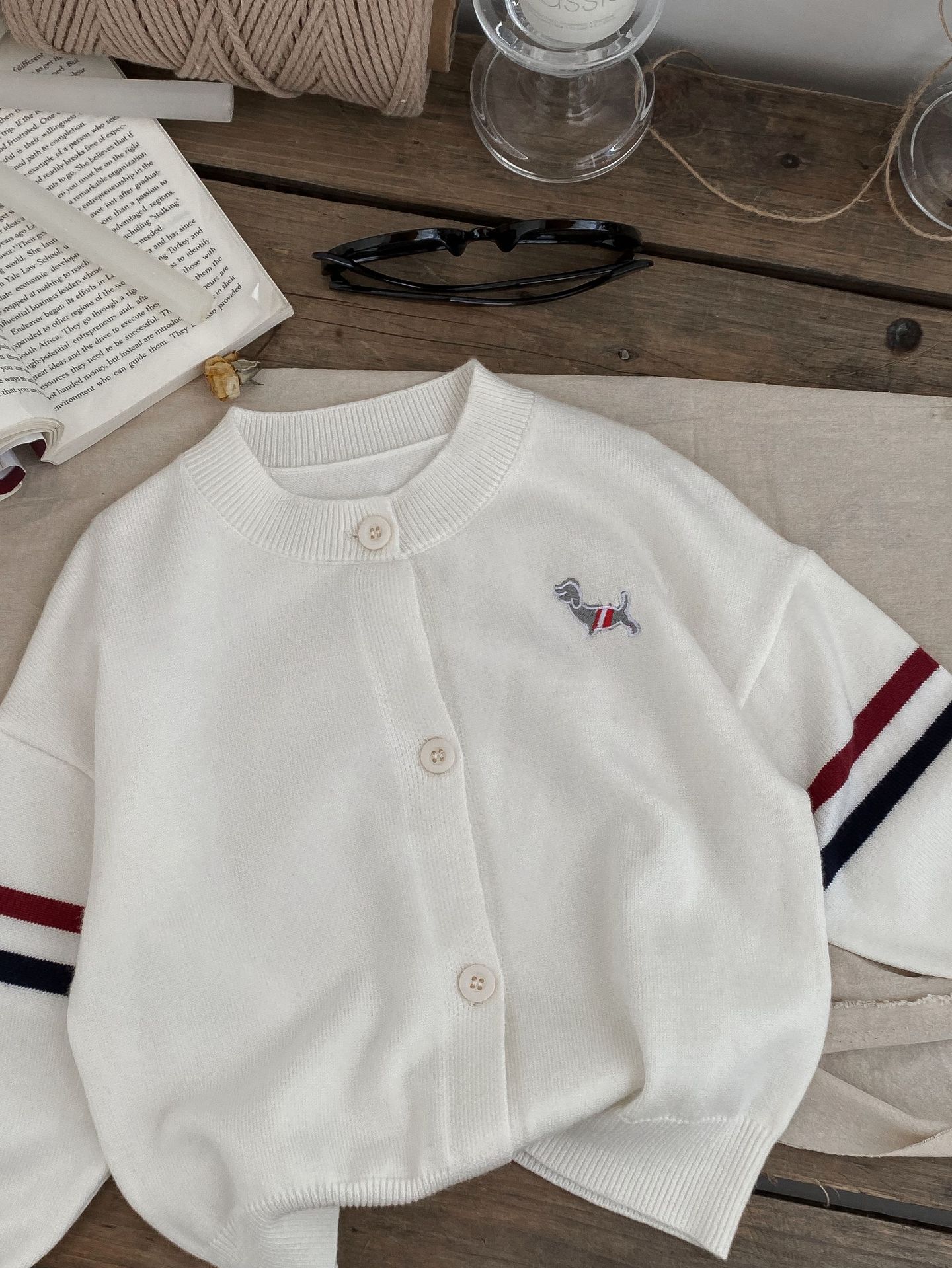 어린이 스웨터 카디건 2024 가을, 겨울 새로운 소년과 소녀 니트 자수 다목적 한국 스타일 탑 코트 아동 의류