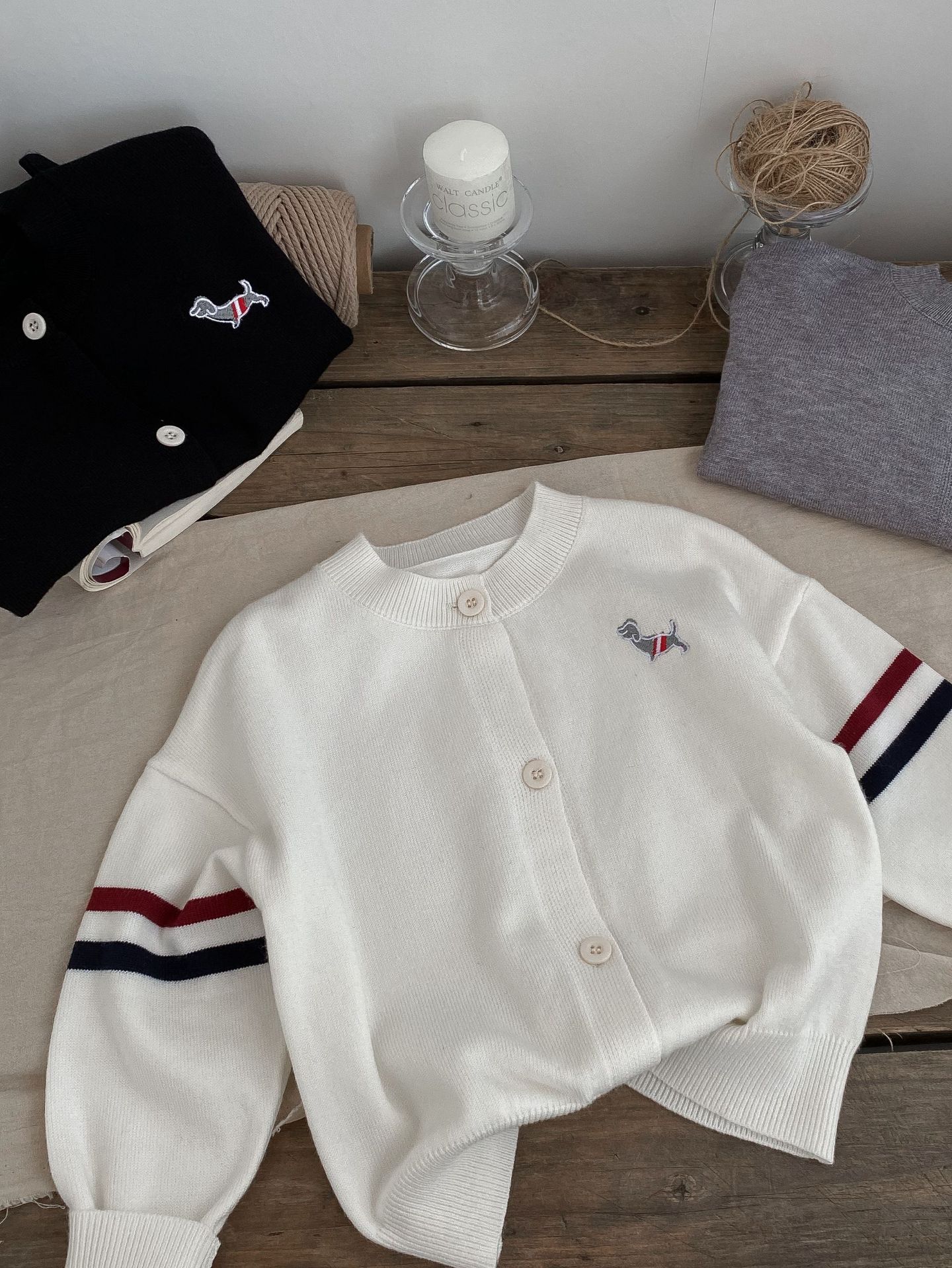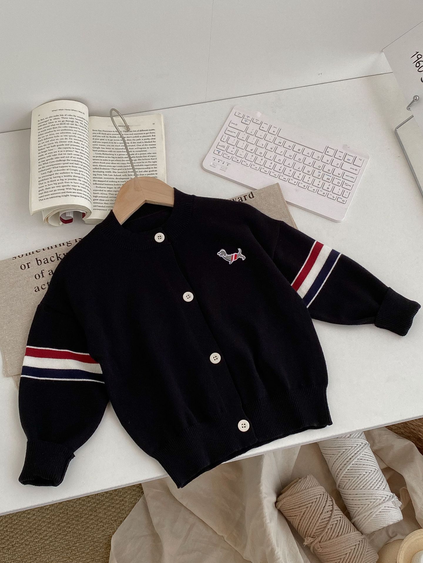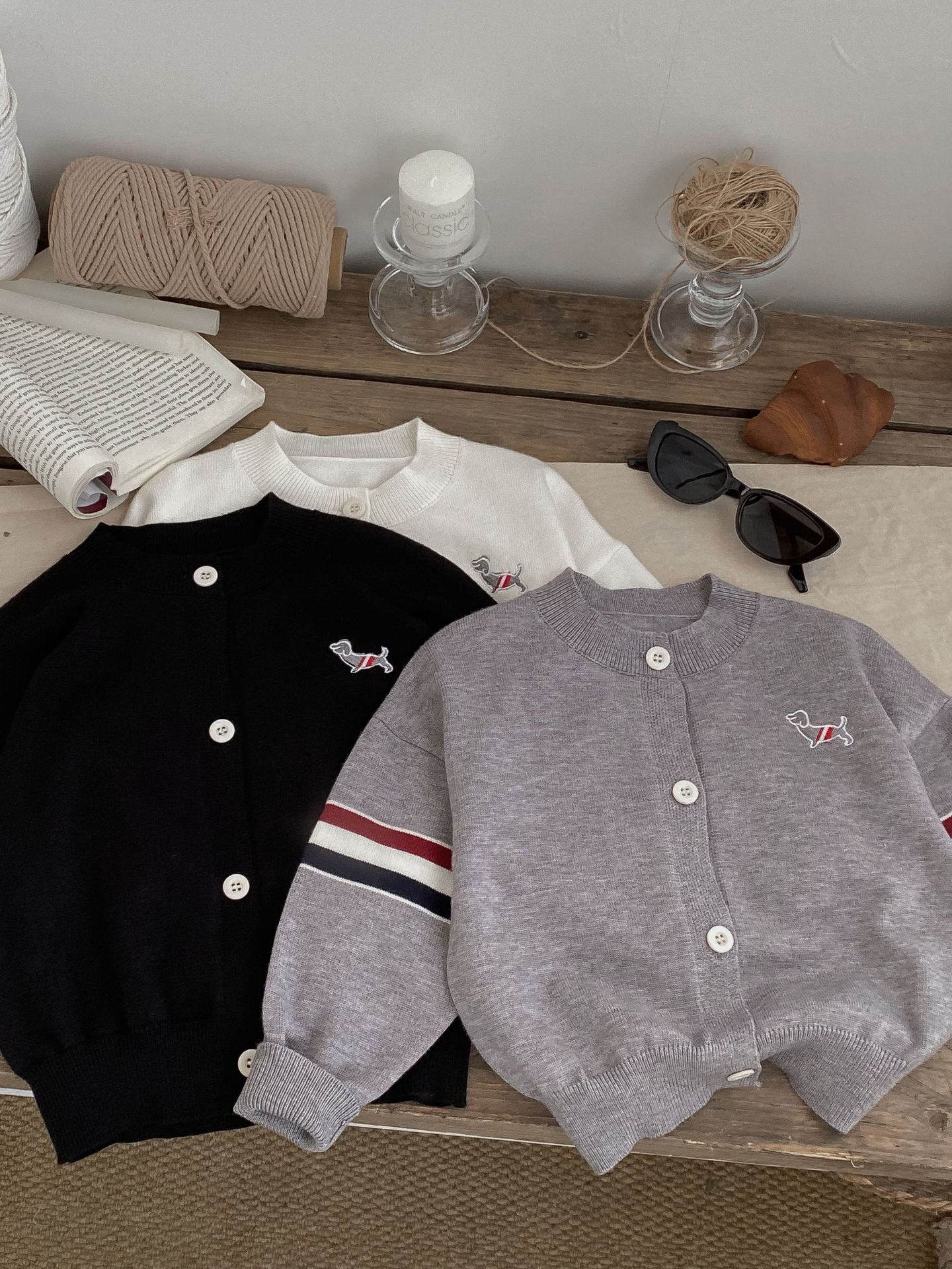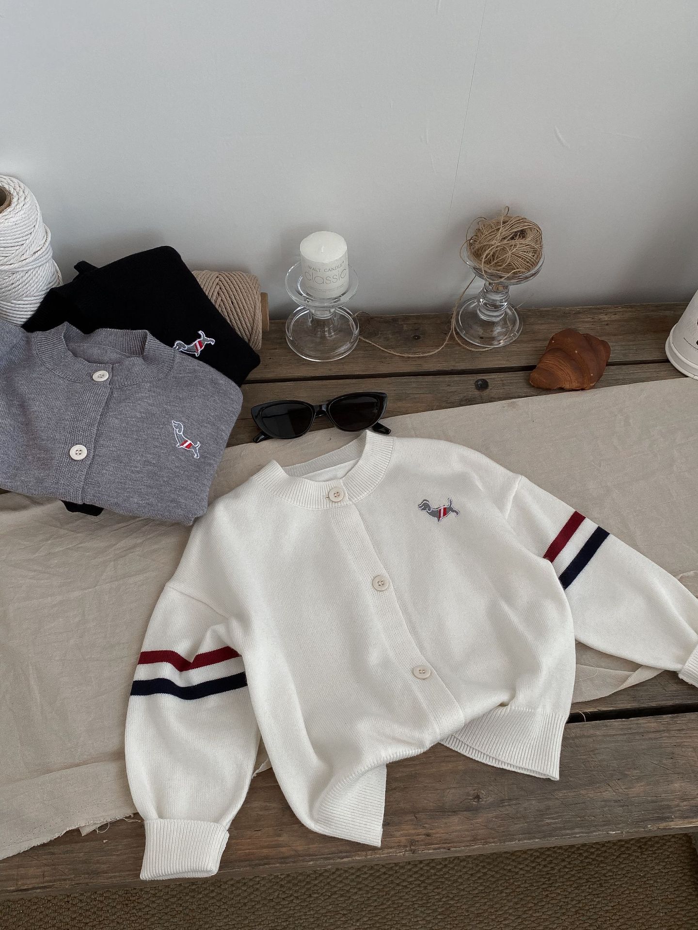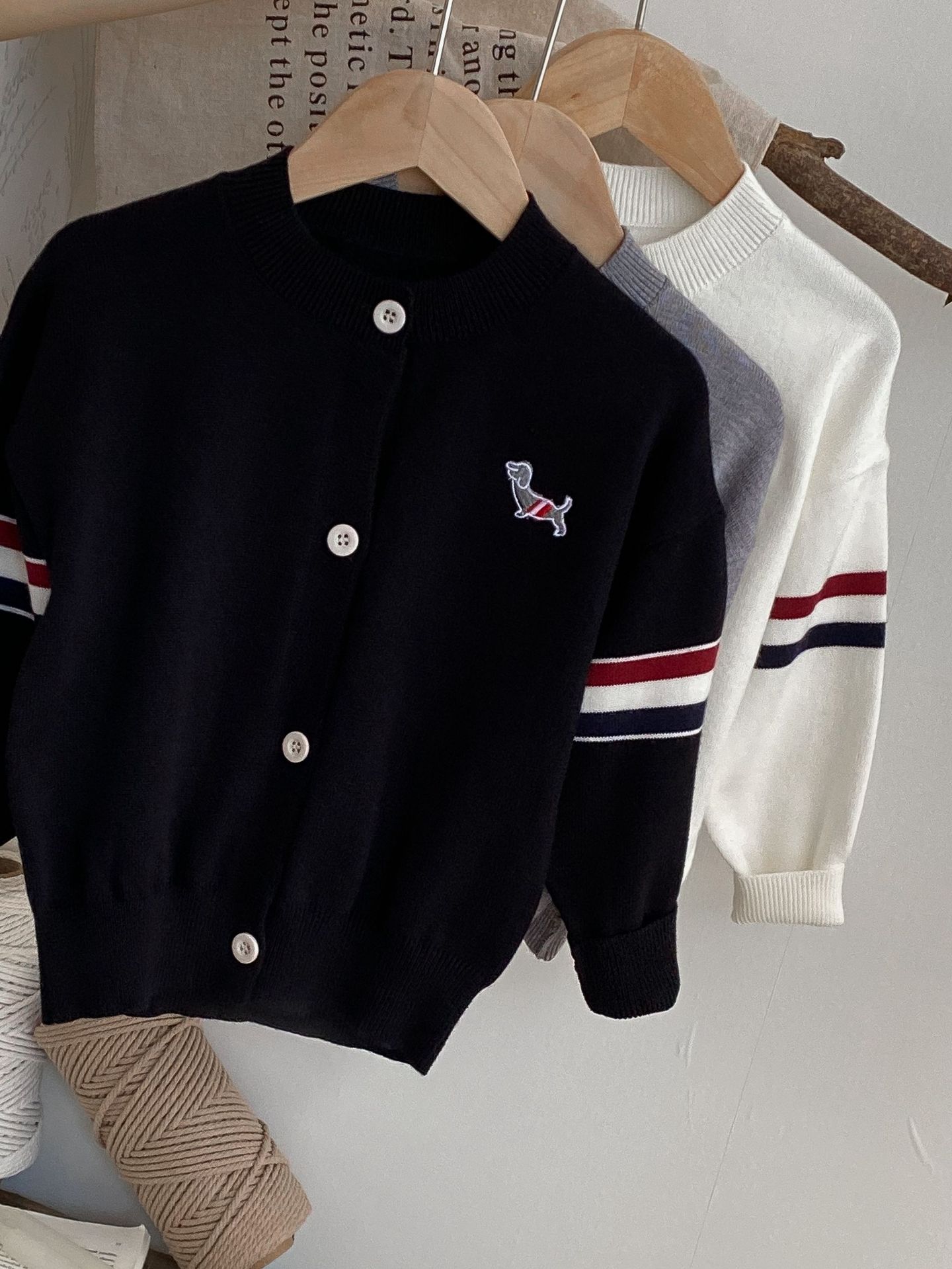 어린이 스웨터 카디건 2024 가을, 겨울 새로운 소년과 소녀 니트 자수 다목적 한국 스타일 탑 코트 아동 의류스토어 가기