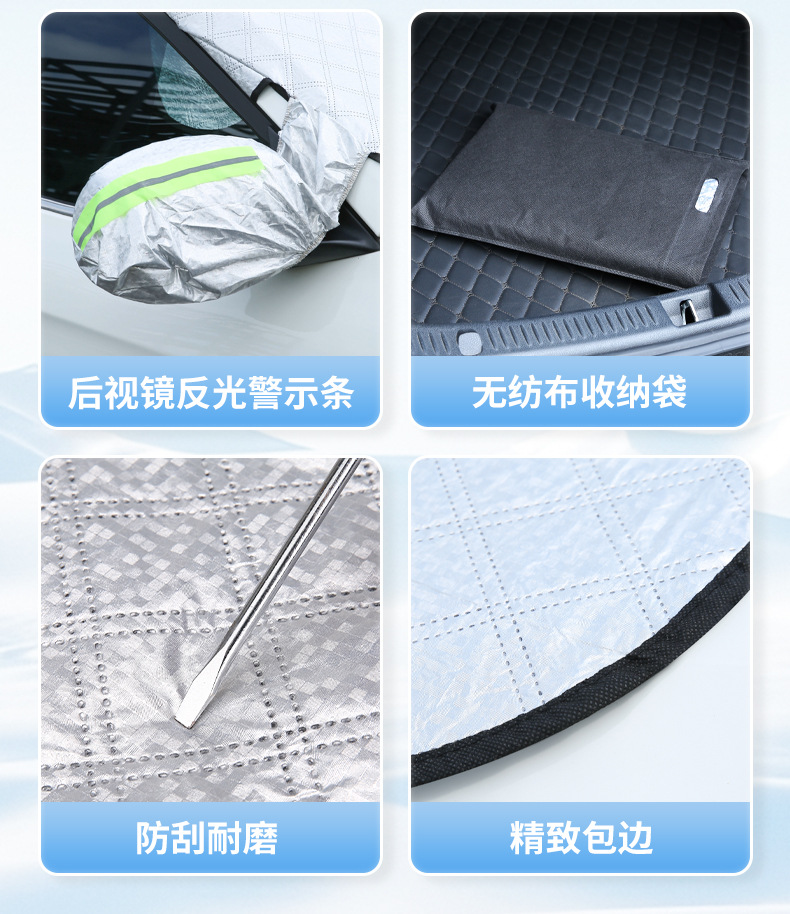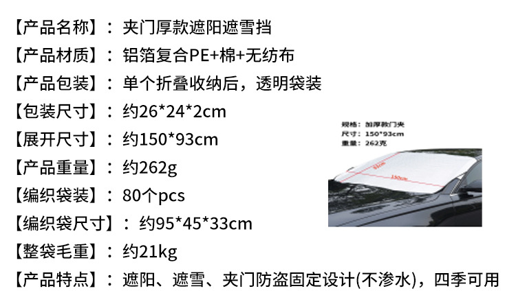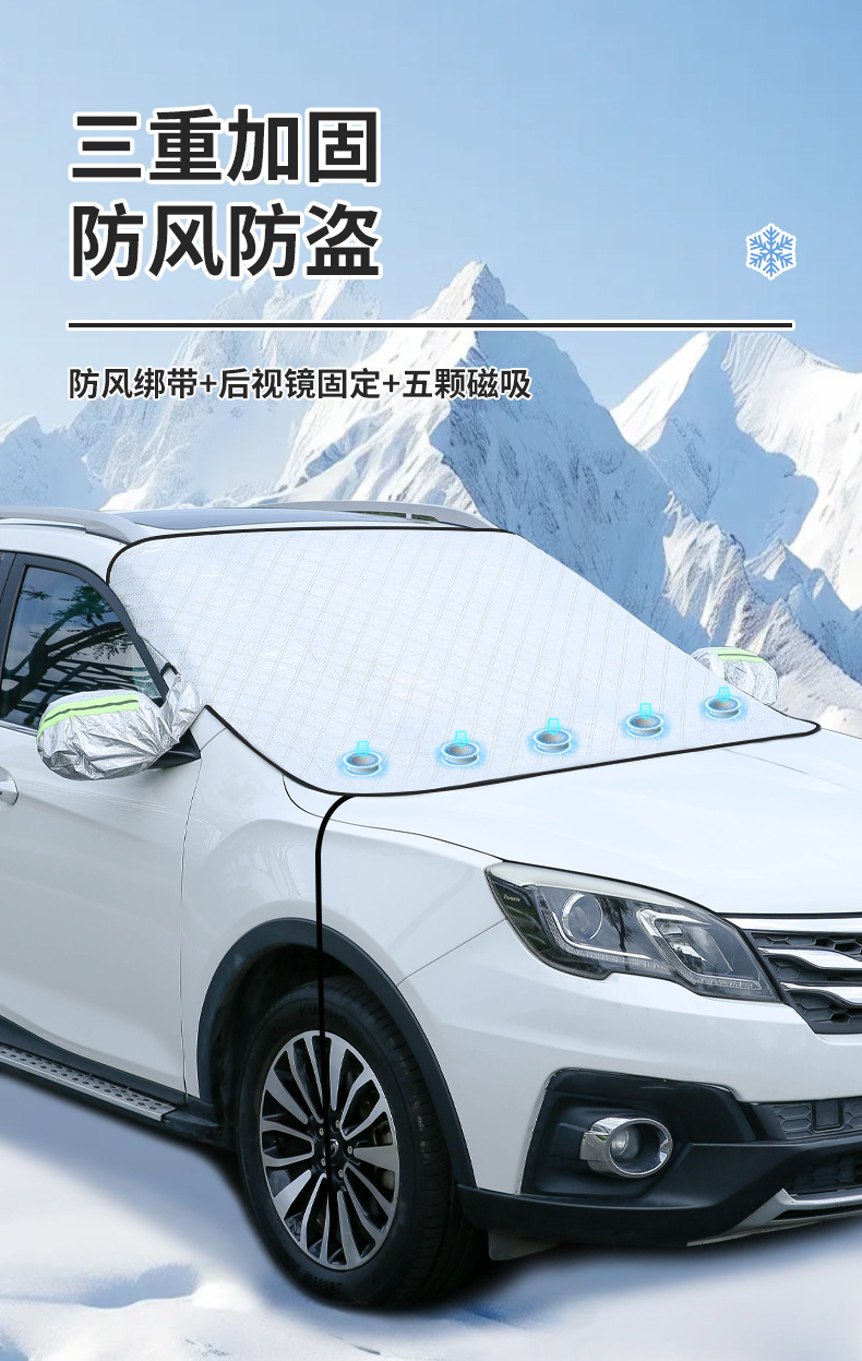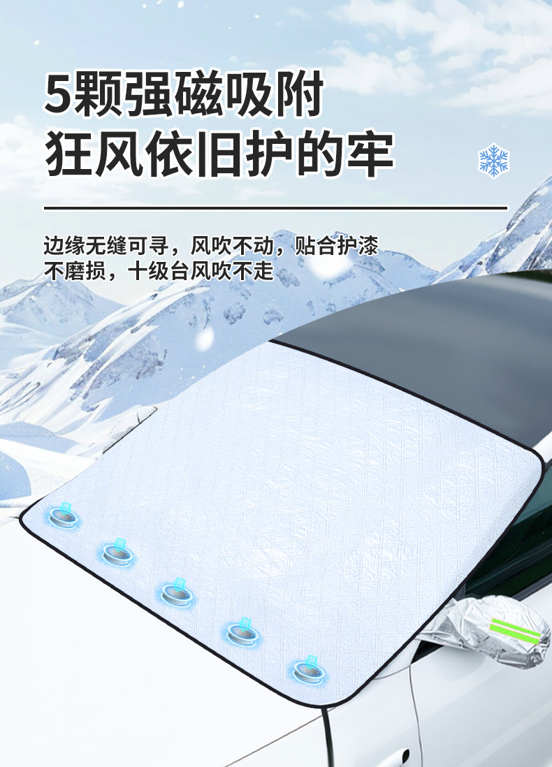 【产品特点】:5颗大磁铁吸附固定,后视镜反光警示,夹门防盗固定设计(不渗水),四季可用。