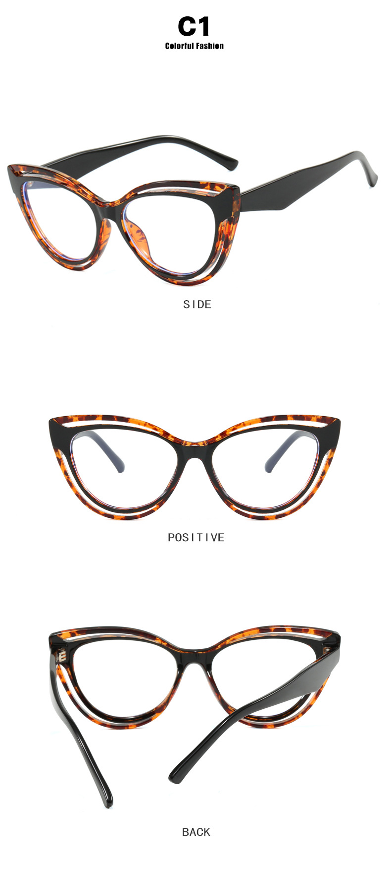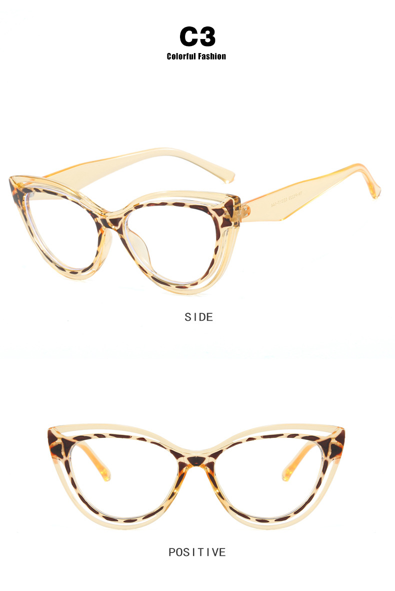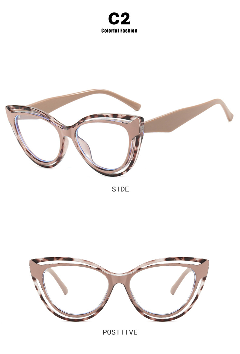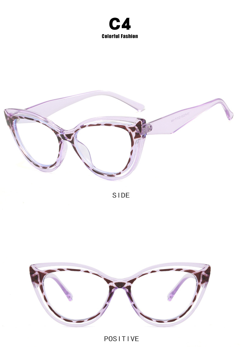 패션 숙녀 컬러 매칭 고양이 눈 안경 프레임 2024 새로운 TR90 안티 블루 라이트 플랫 미러 크로스 보더 유럽과 미국 안경 프레임