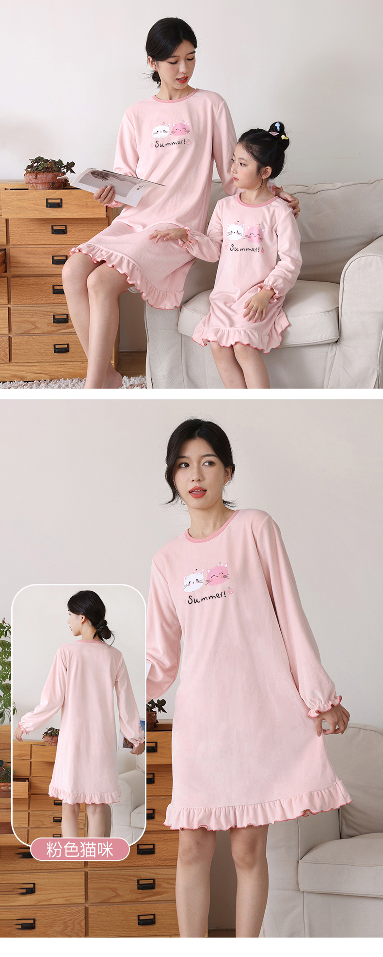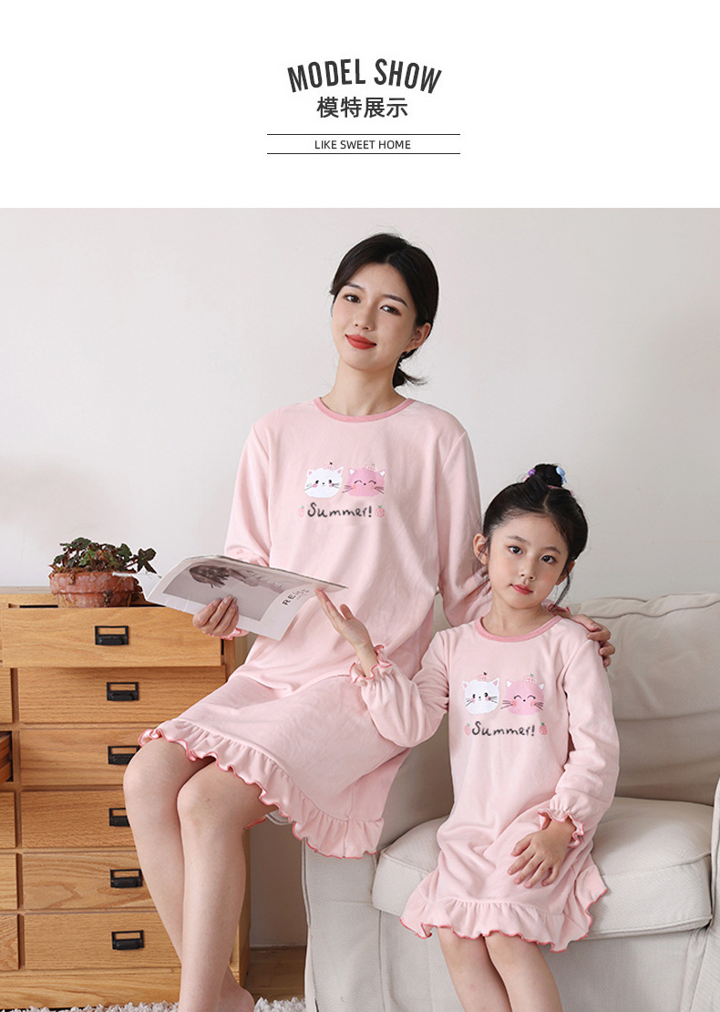 크리스탈 벨벳 잠옷 가을과 겨울 새로운 여성 기모 두꺼운 잠옷 소녀 홈 옷 부모-아이 아기 잠옷스토어 가기