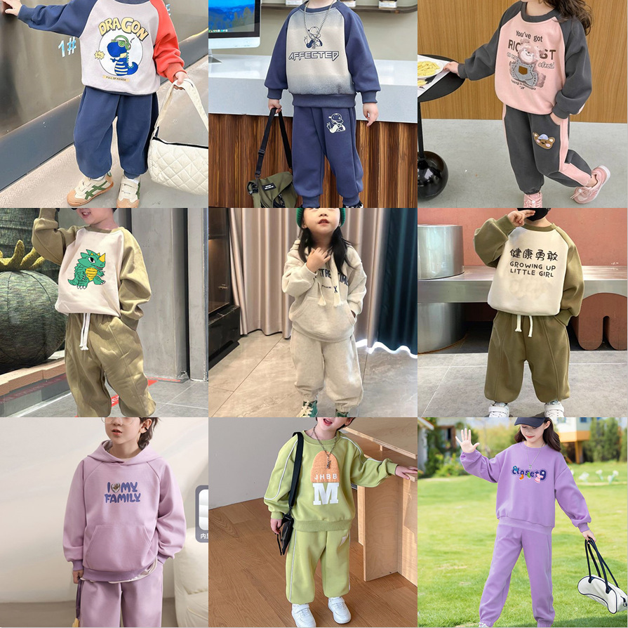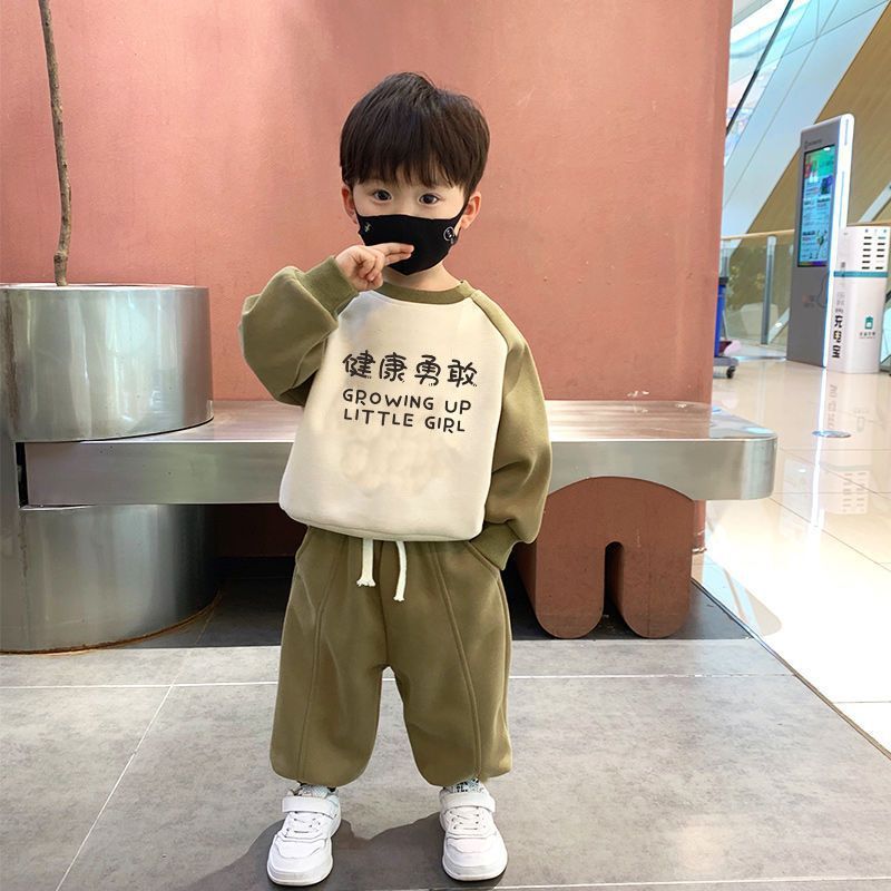 남녀 어린이 세트 봄과 가을 새로운 어린이 한국 레저 스포츠 스웨터 투피스 기모 잘 생긴 아동복스토어 가기
