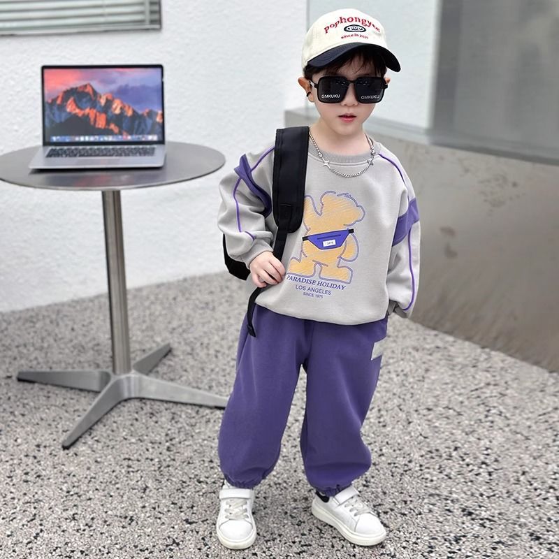 남녀 어린이 세트 봄과 가을 새로운 어린이 한국 레저 스포츠 스웨터 투피스 기모 잘 생긴 아동복