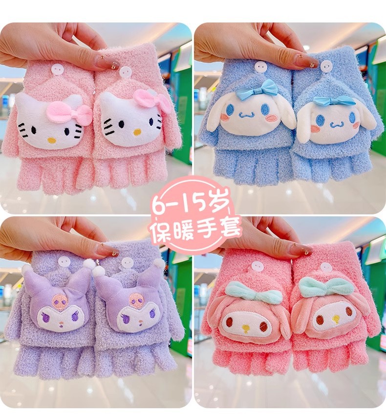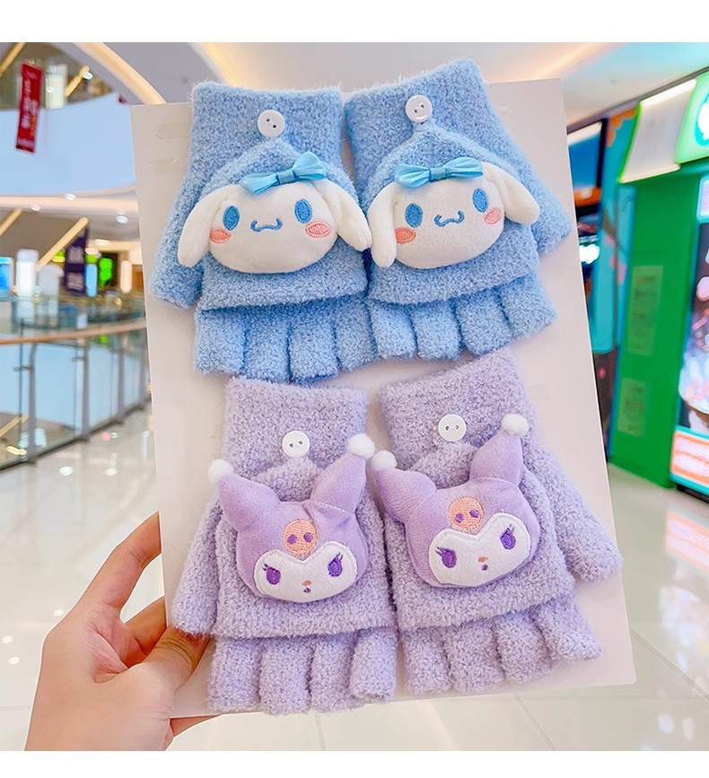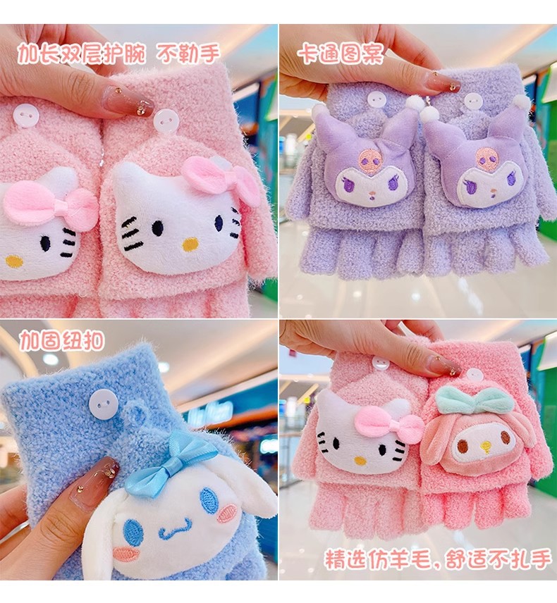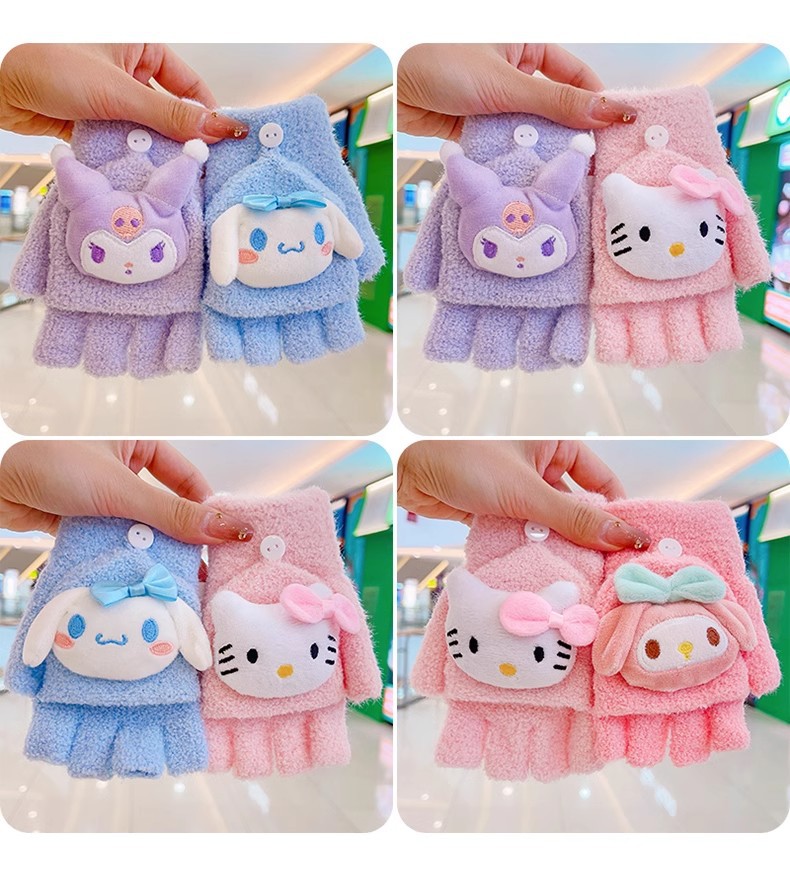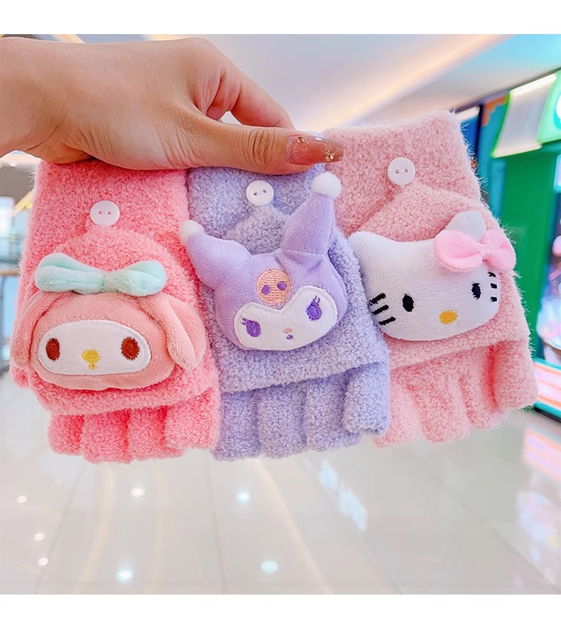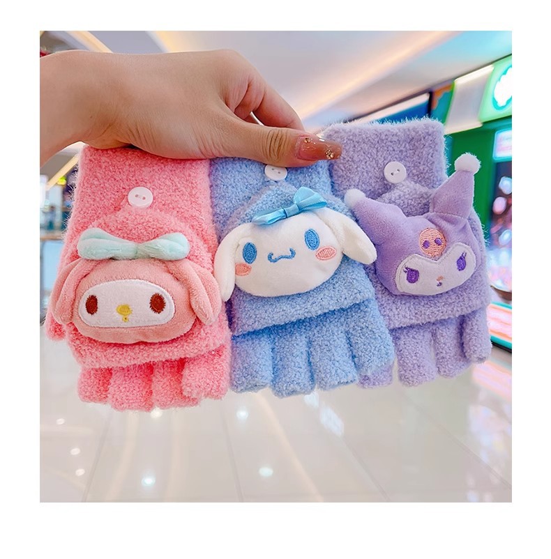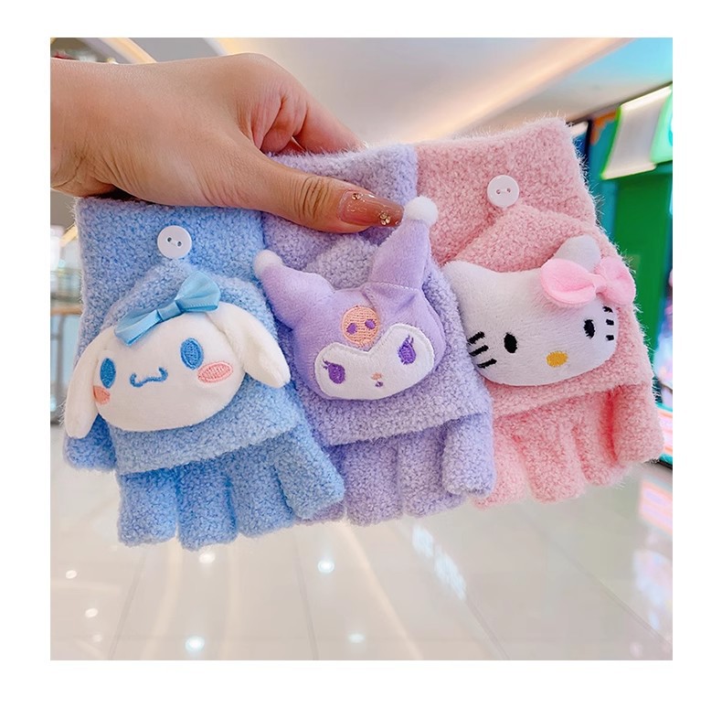 봉제 플립 어린이 장갑 여성의 귀여운 유니버설 니트 산호 양털 만화 장갑 어린이 장갑 도매스토어 가기
