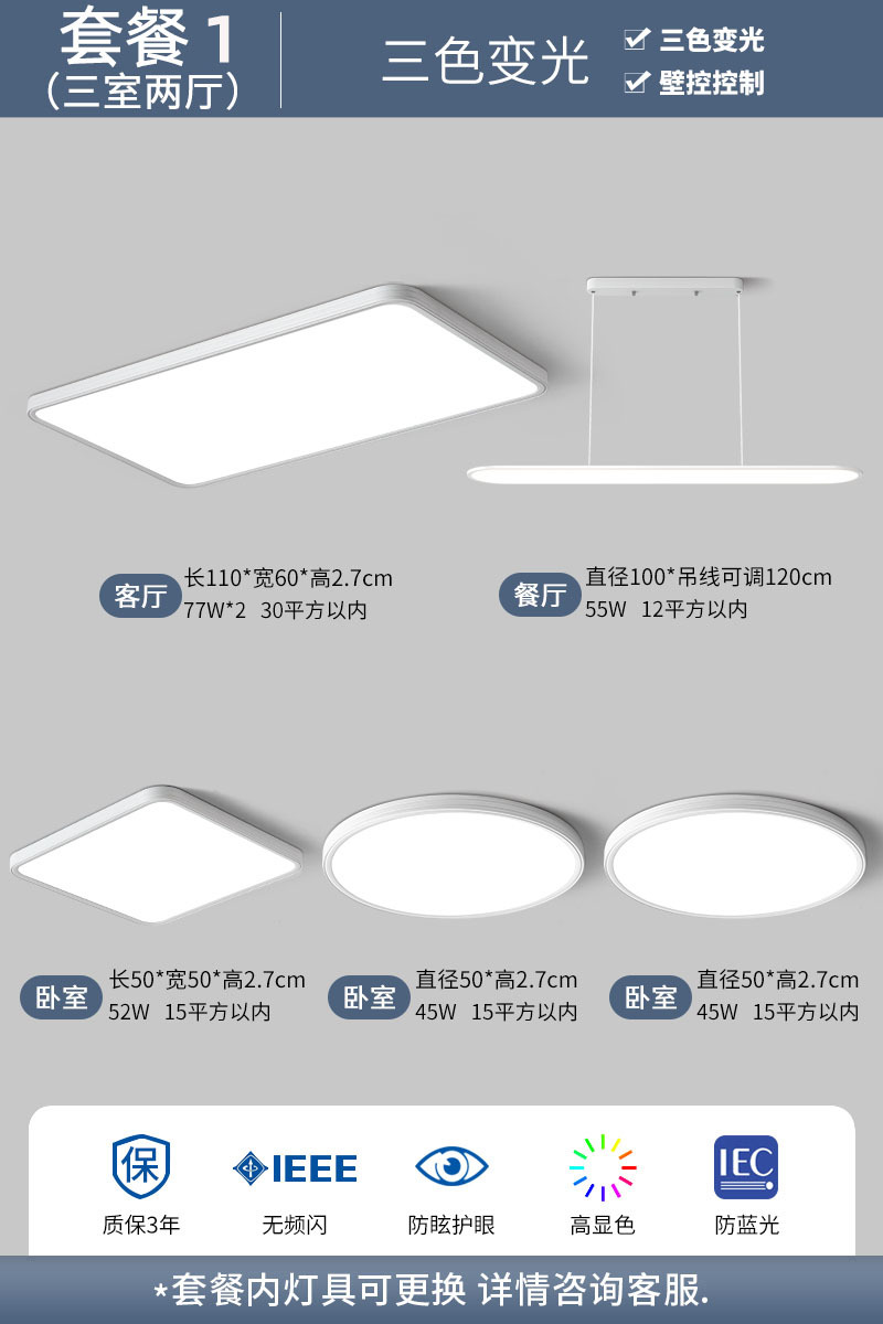 极简超薄无缝隙全光谱护眼吸顶灯LED高级感客厅全屋套餐中山灯具
