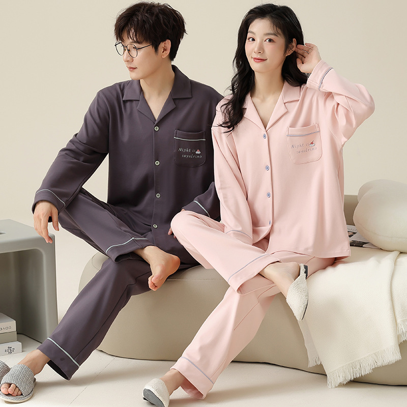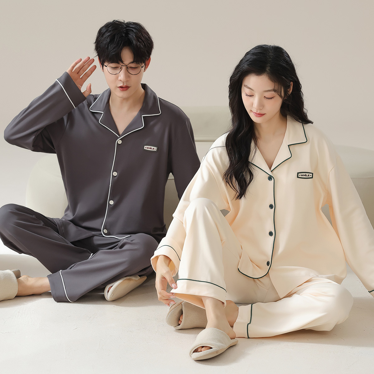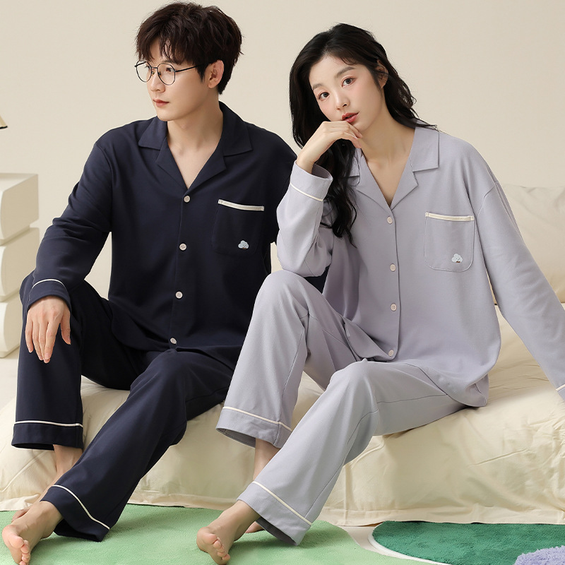 순면 커플 잠옷 여성용 봄 가을 긴팔 신상 청년 남성용 가디건 순면 고급 홈웨어 세트