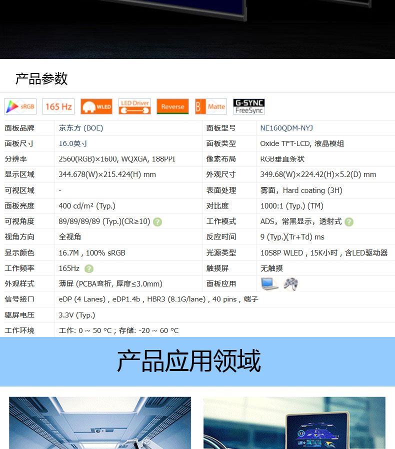 경동방 16인치 2.5k 디스플레이 NE160QDM-NYJ 휴대용 LCD 화면 고해상도