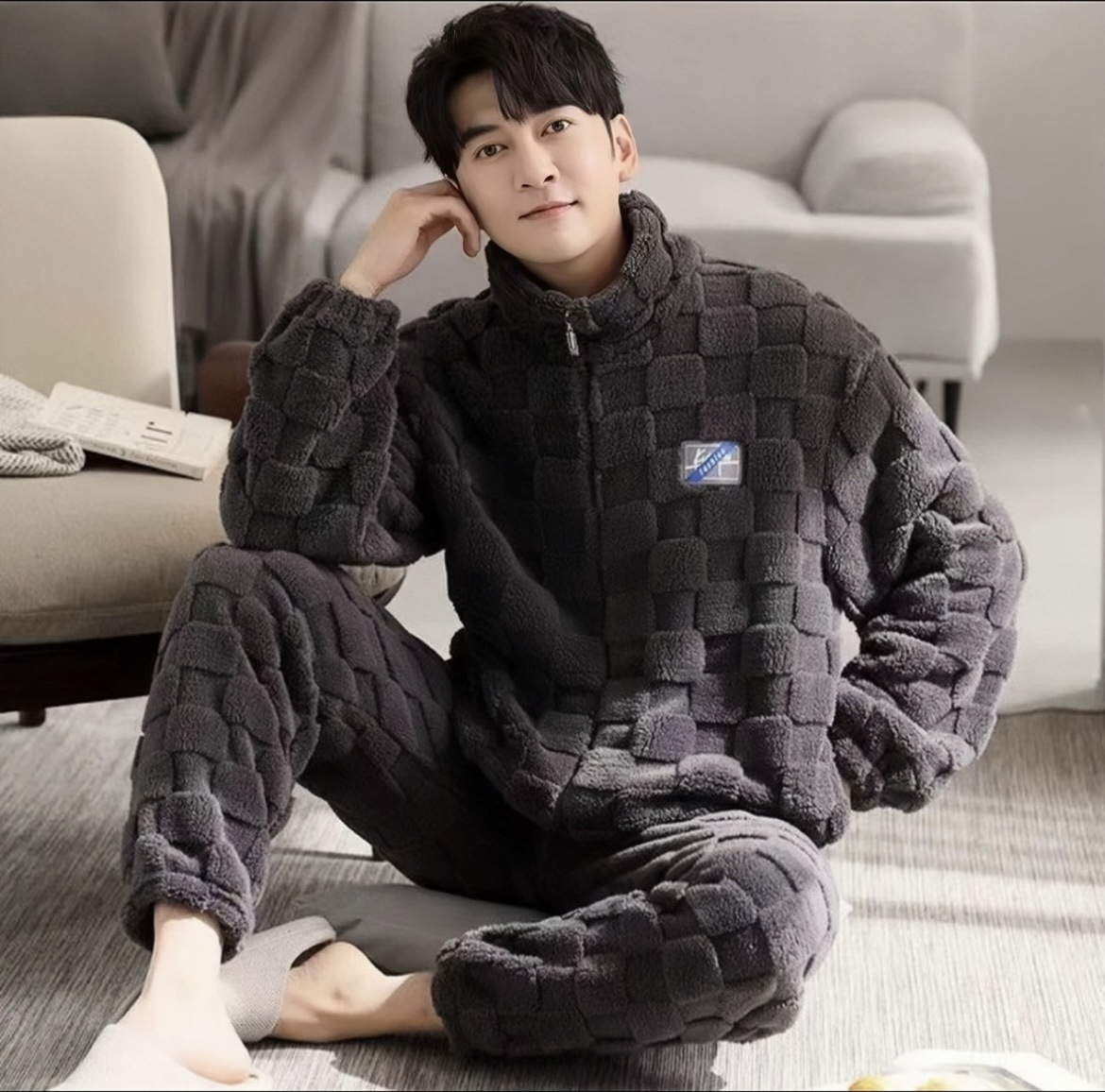 패션 잠옷 남자의 두꺼운 기모 산호 양털 따뜻한 플란넬 가을과 겨울 남자 십대 새 집 옷스토어 가기