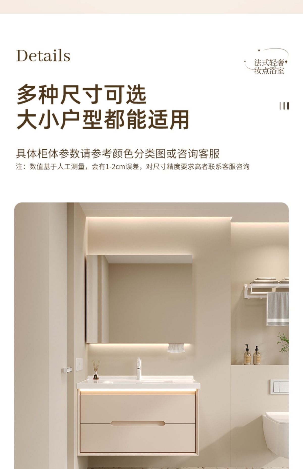 크림 스타일 욕실 캐비닛 세라믹 올인원 분지 솔리드 우드 워시 분지 캐비닛 조합 간단한 스마트 세면기 워시 분지 캐비닛스토어 가기