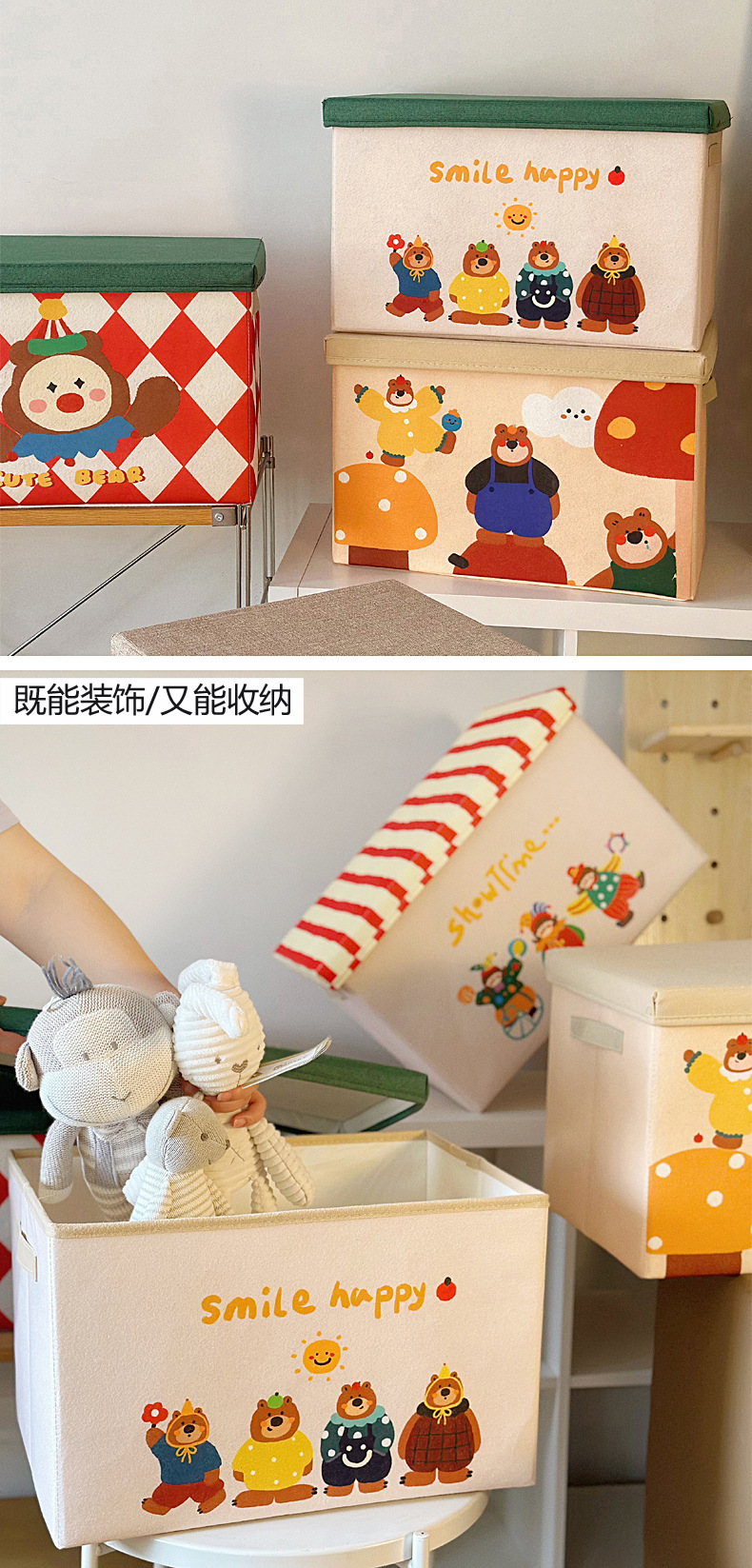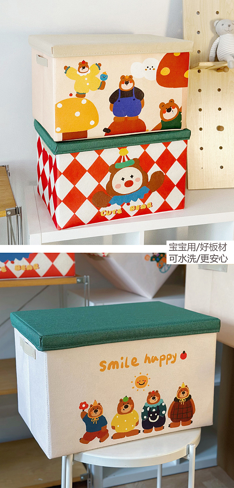 뚜껑 자동차 옷장 보관 상자 방진 접이식 보관 장치가있는 세척 가능한 냄새없는 만화 기숙사 의류 보관 상자