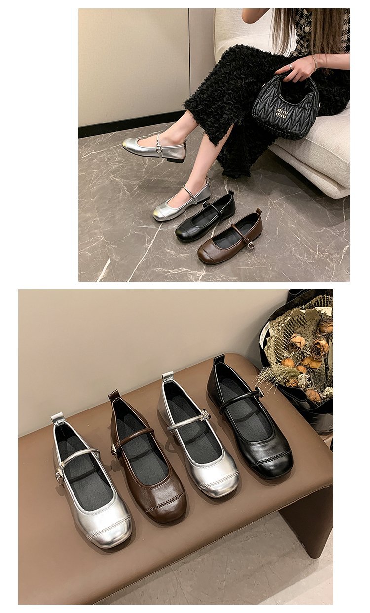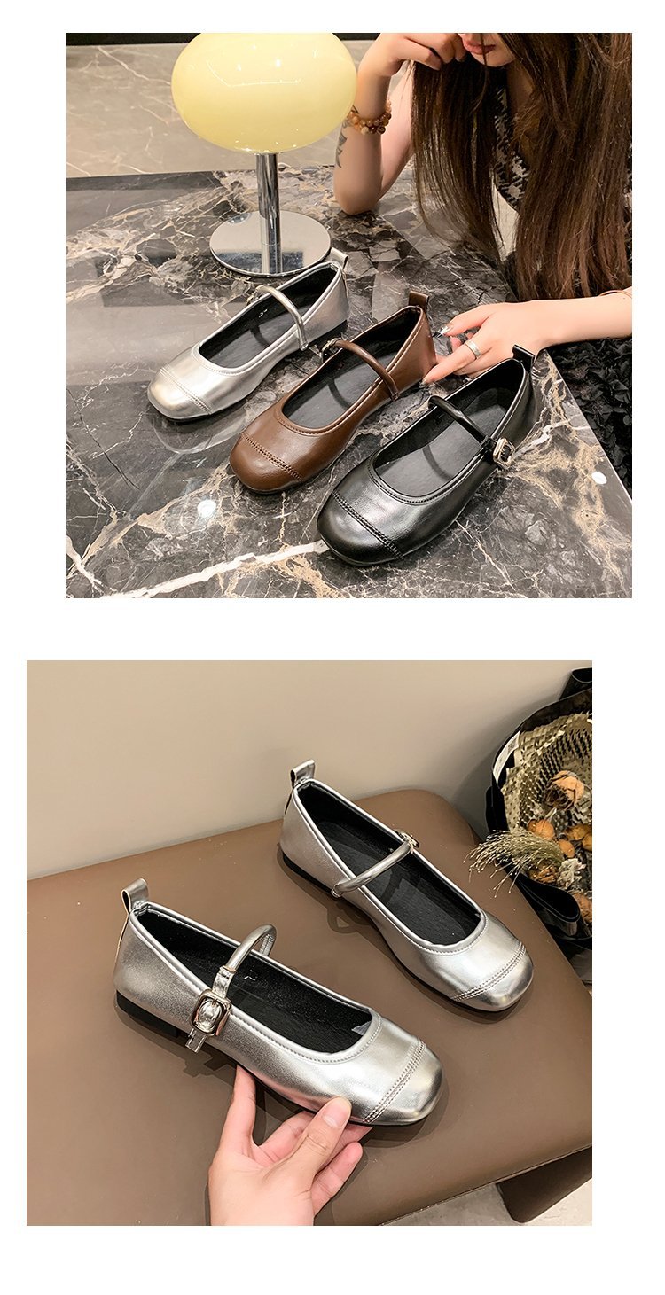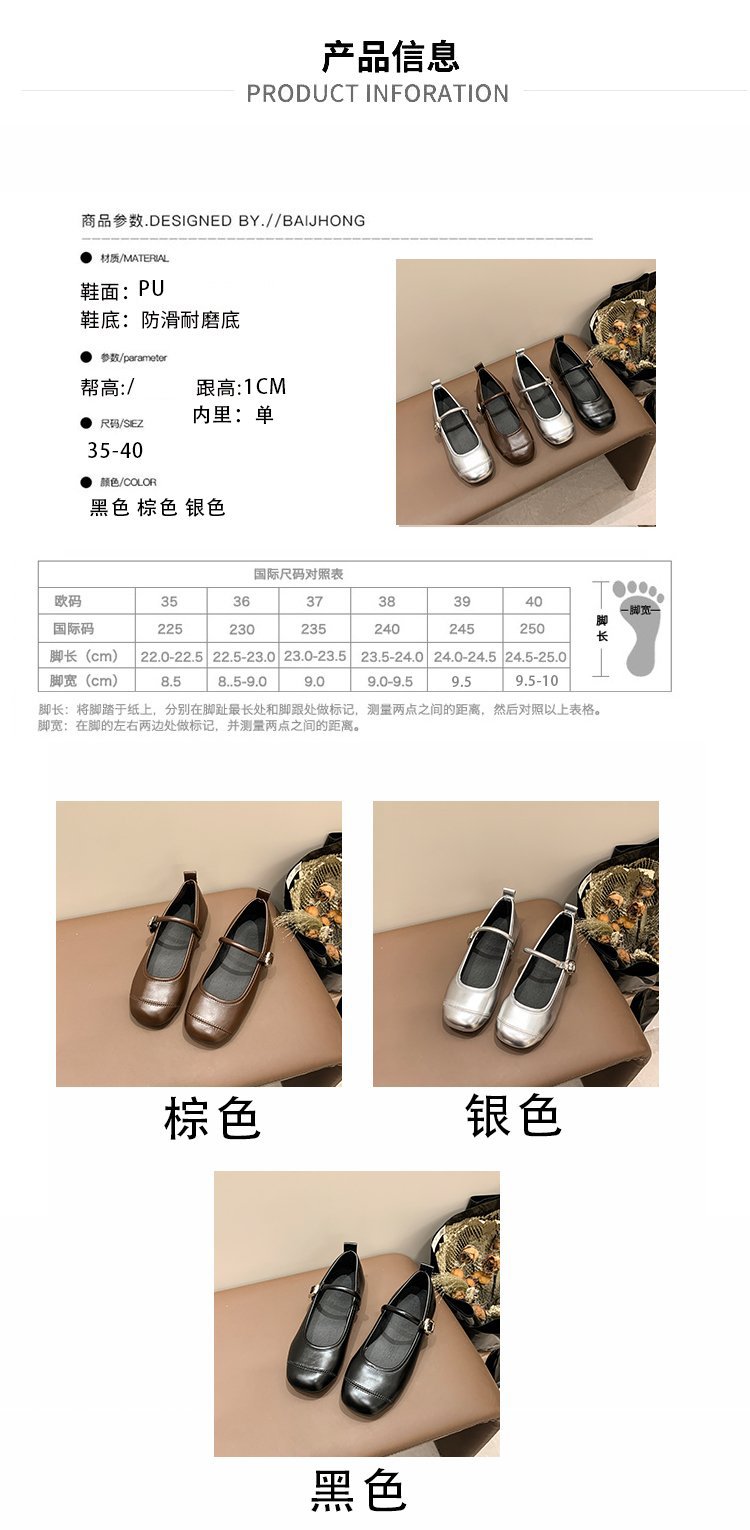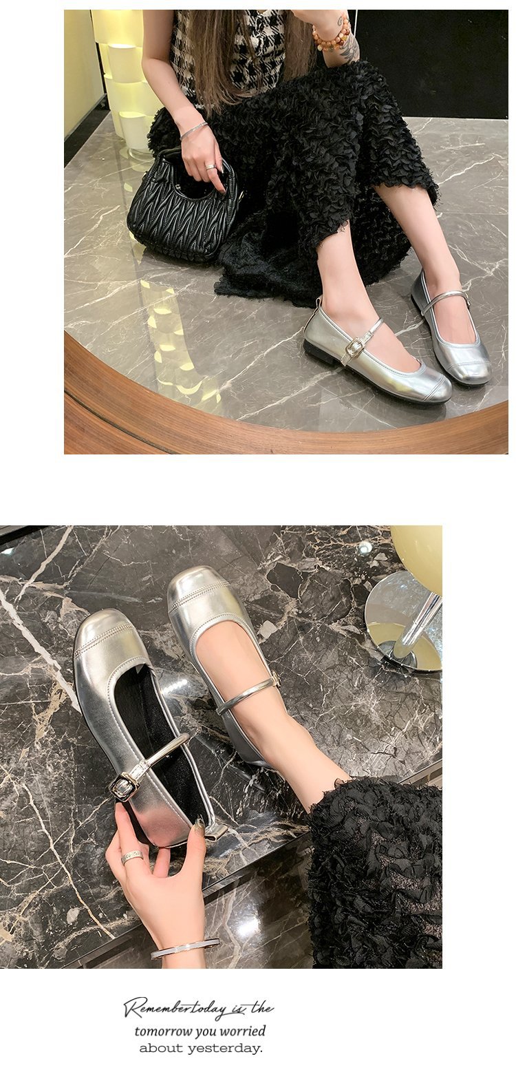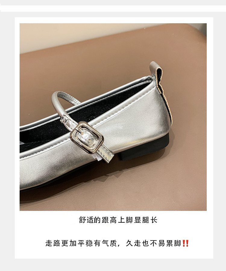 가을 2024 새로운 한국 스타일 경량 작은 가죽 신발 실버 얕은 입 우아한 캐주얼 메리 제인 신발스토어 가기