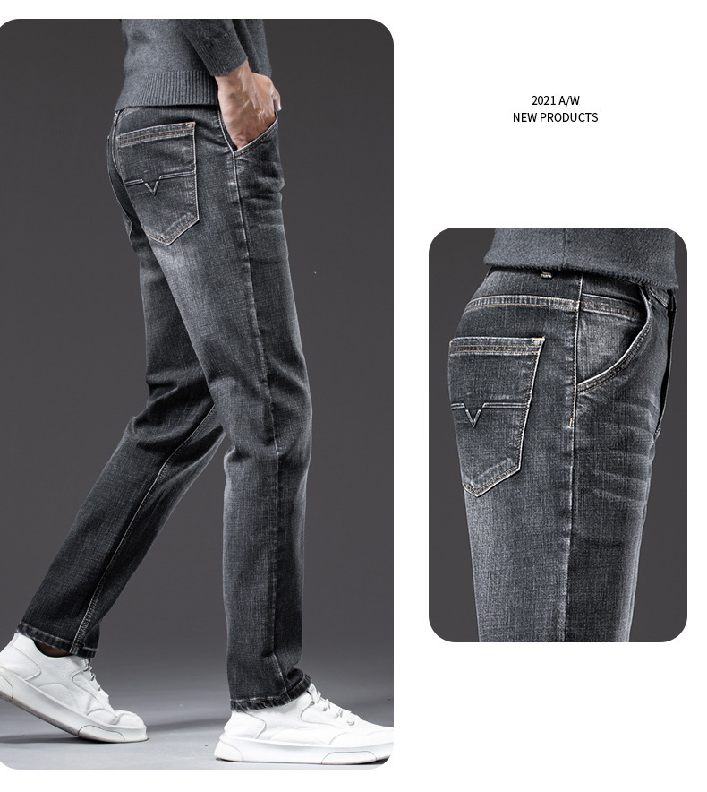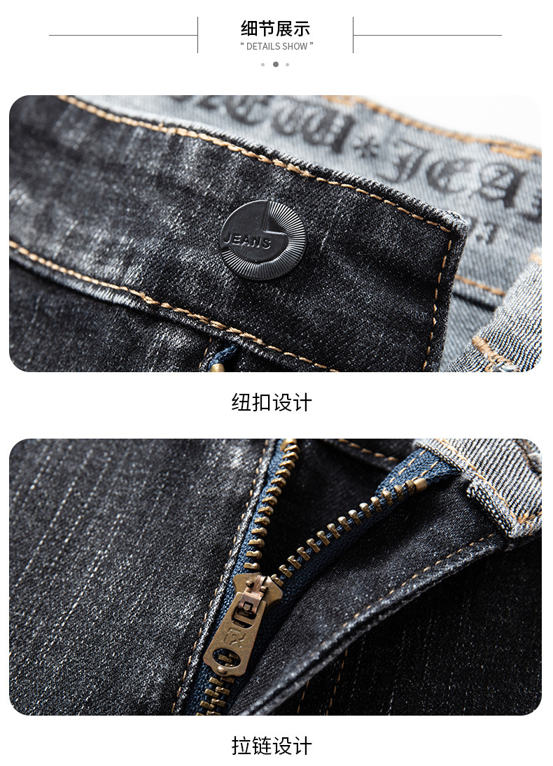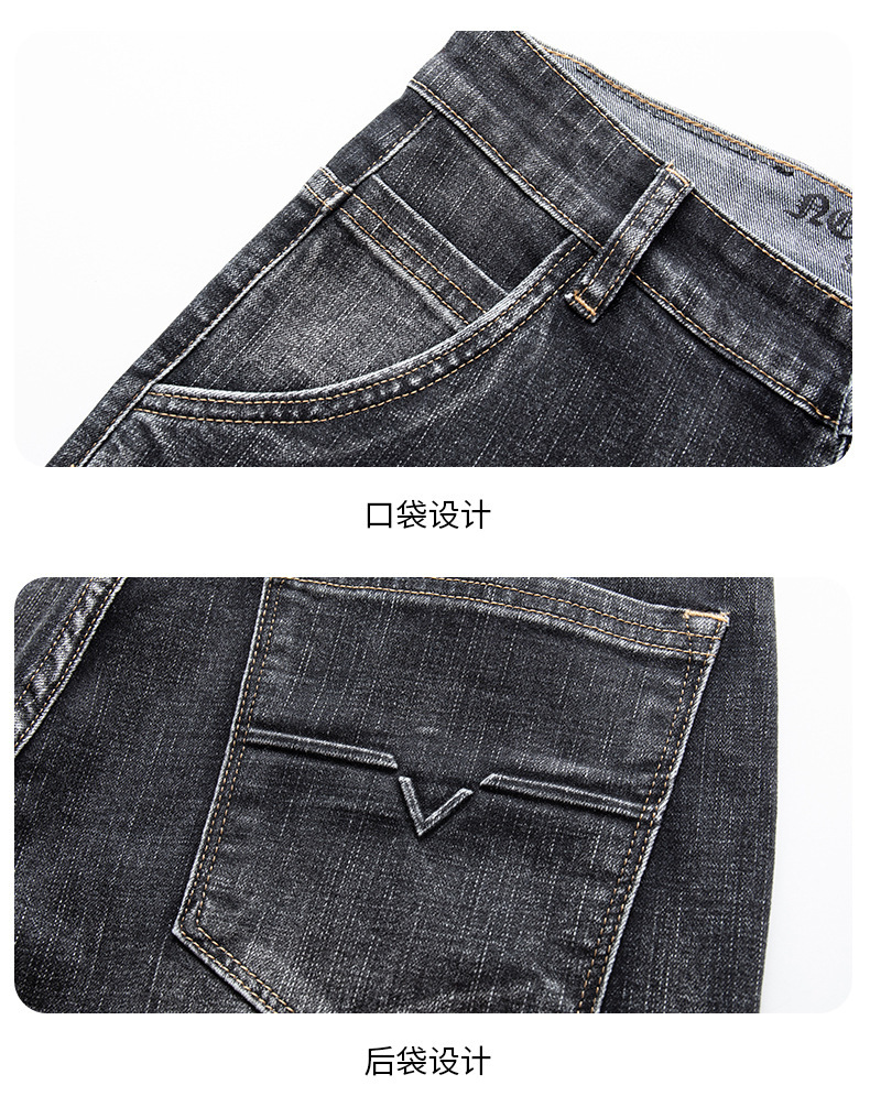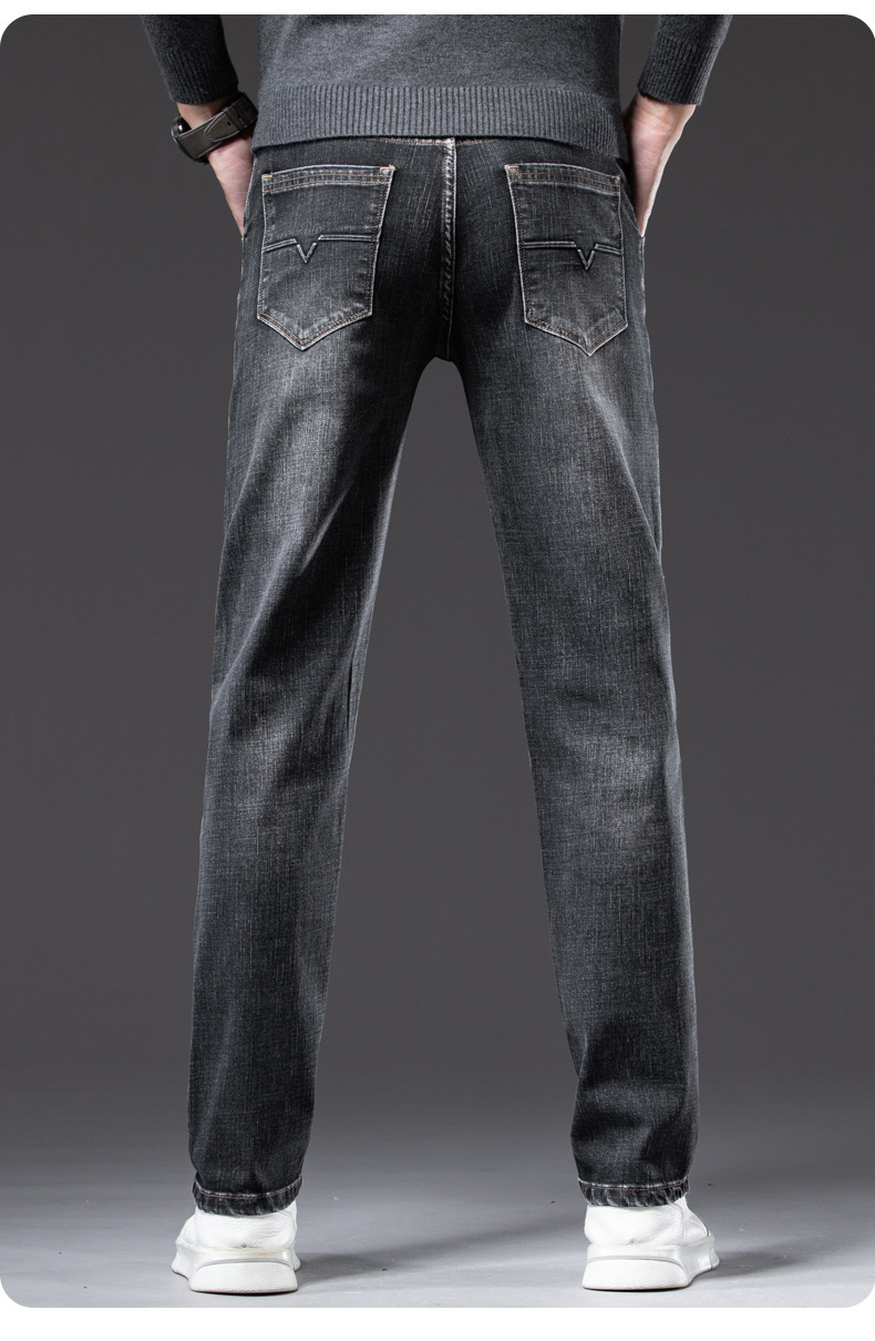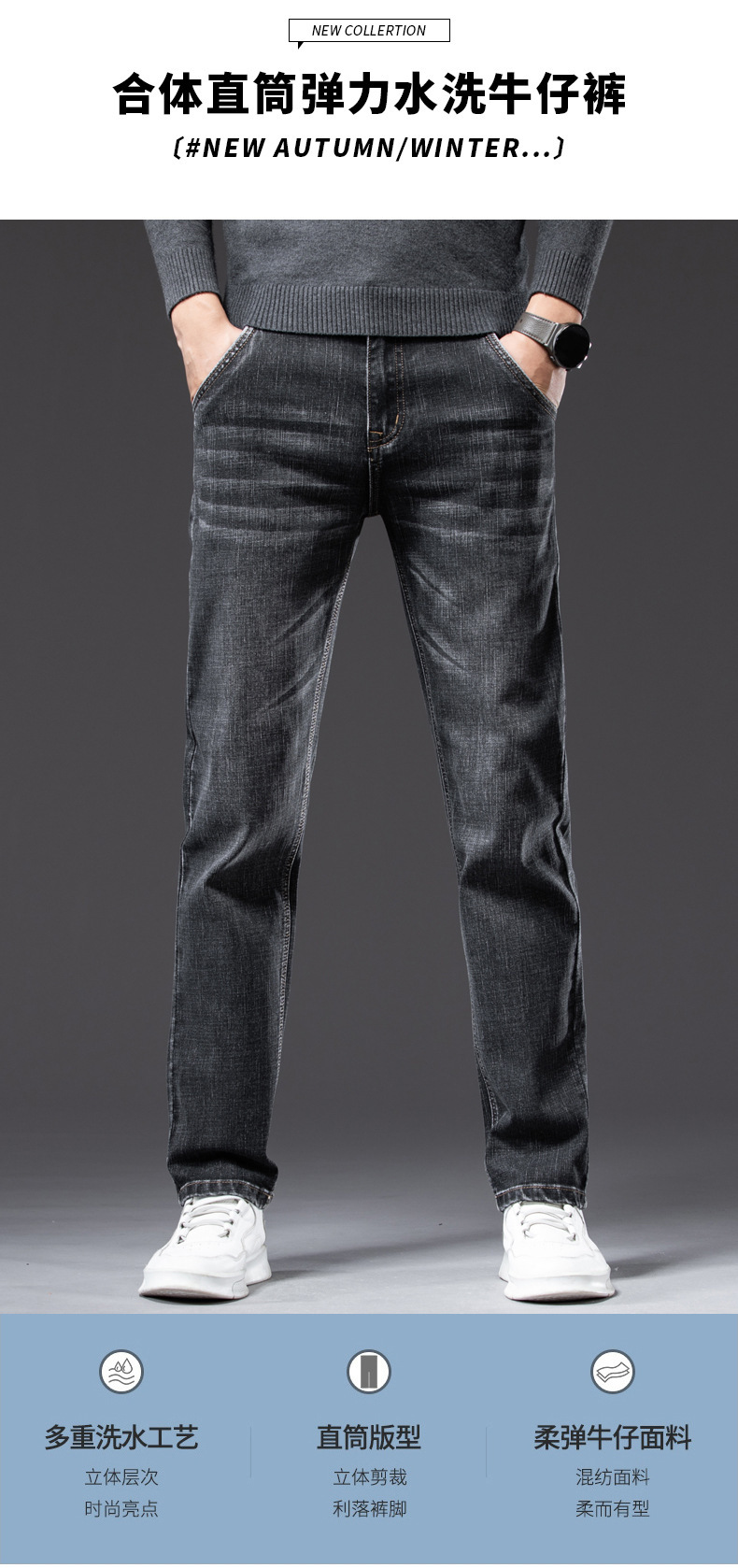 2025春秋蓝灰色弹力合身直筒休闲轻商务男士牛仔裤复古蓝烟灰스토어 가기