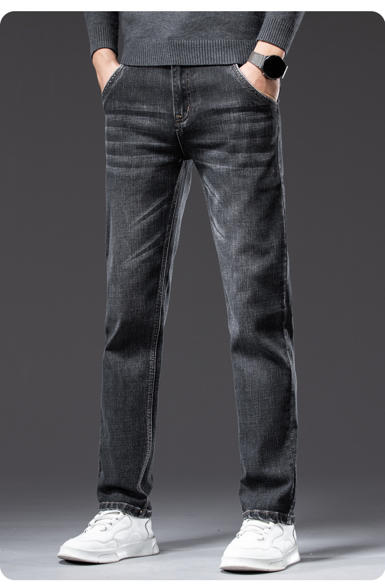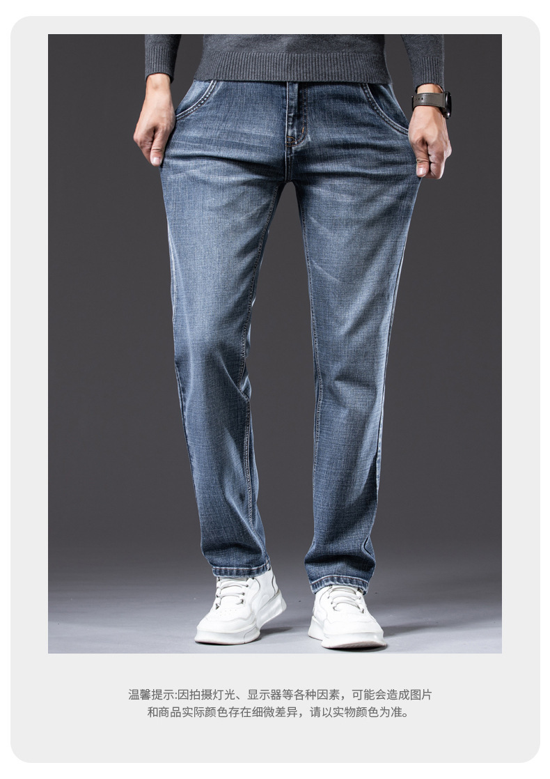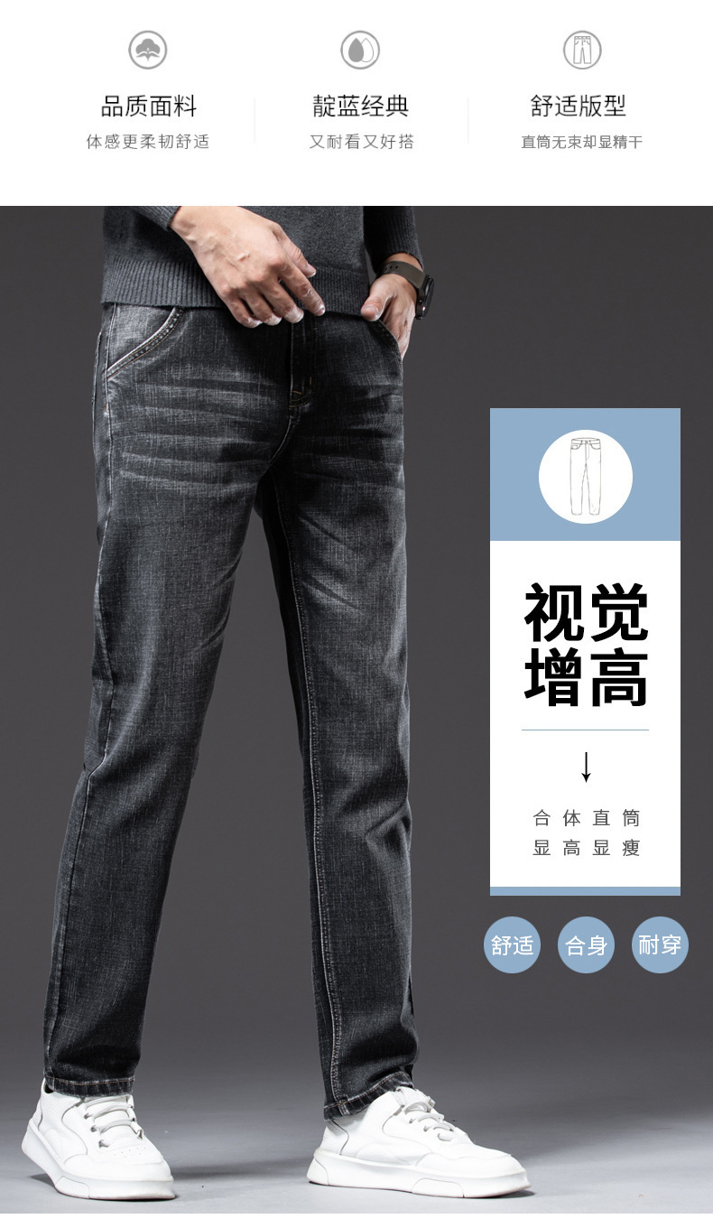 2025春秋蓝灰色弹力合身直筒休闲轻商务男士牛仔裤复古蓝烟灰
