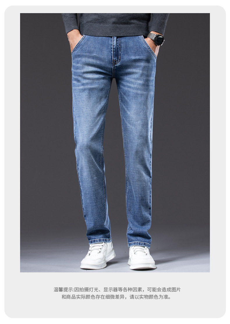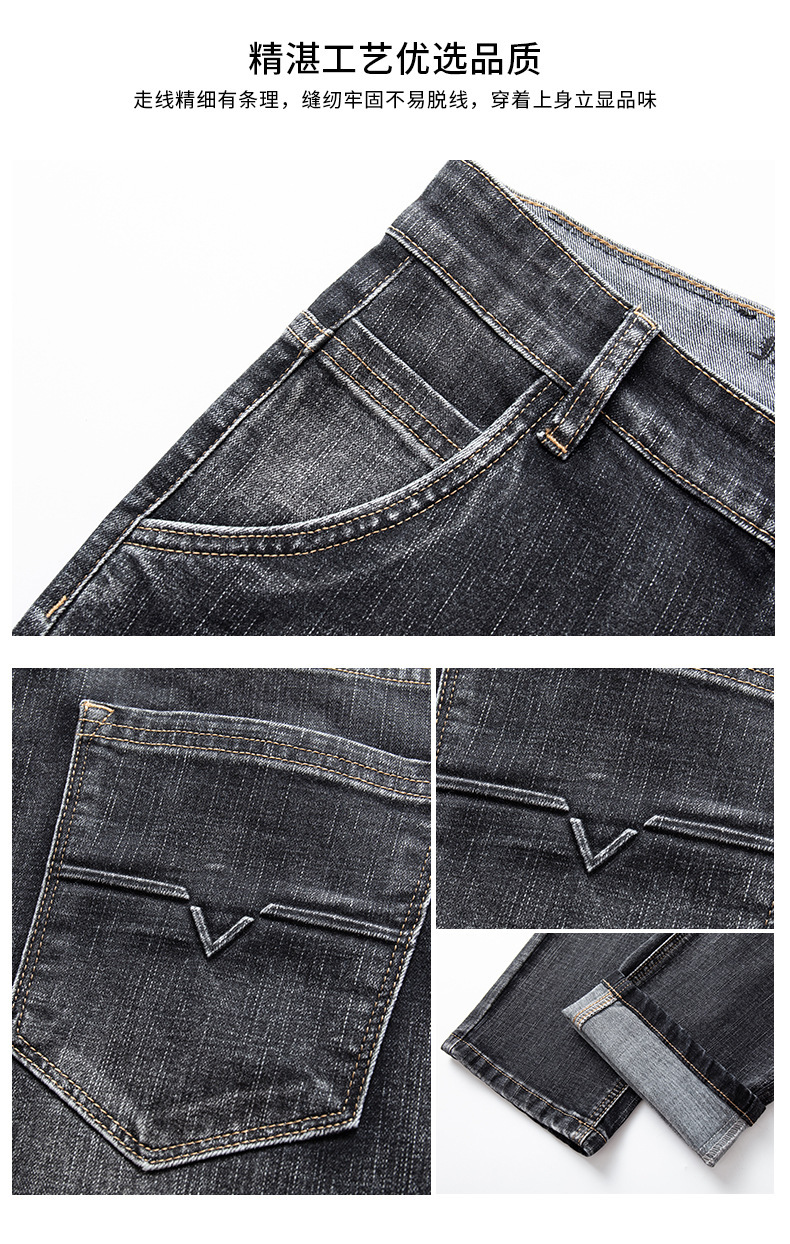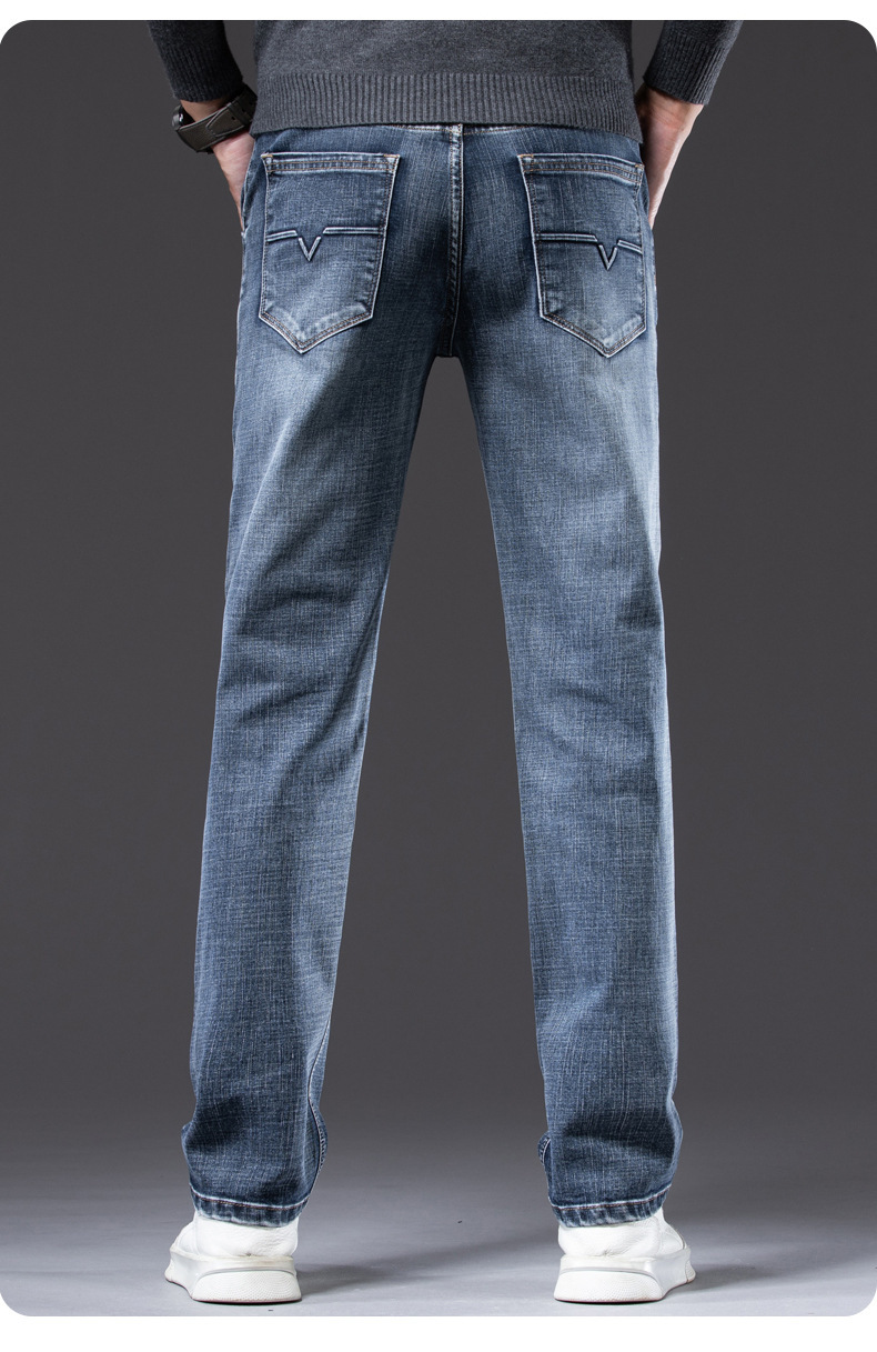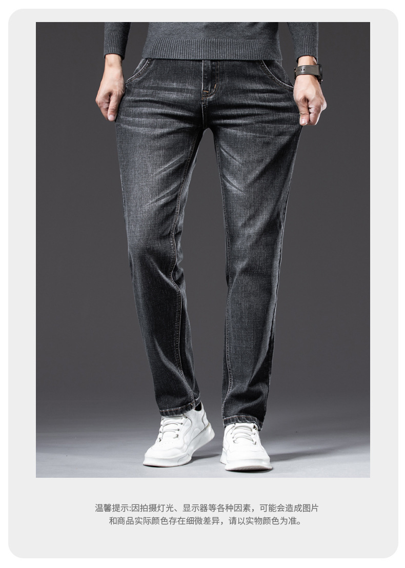 2025春秋蓝灰色弹力合身直筒休闲轻商务男士牛仔裤复古蓝烟灰