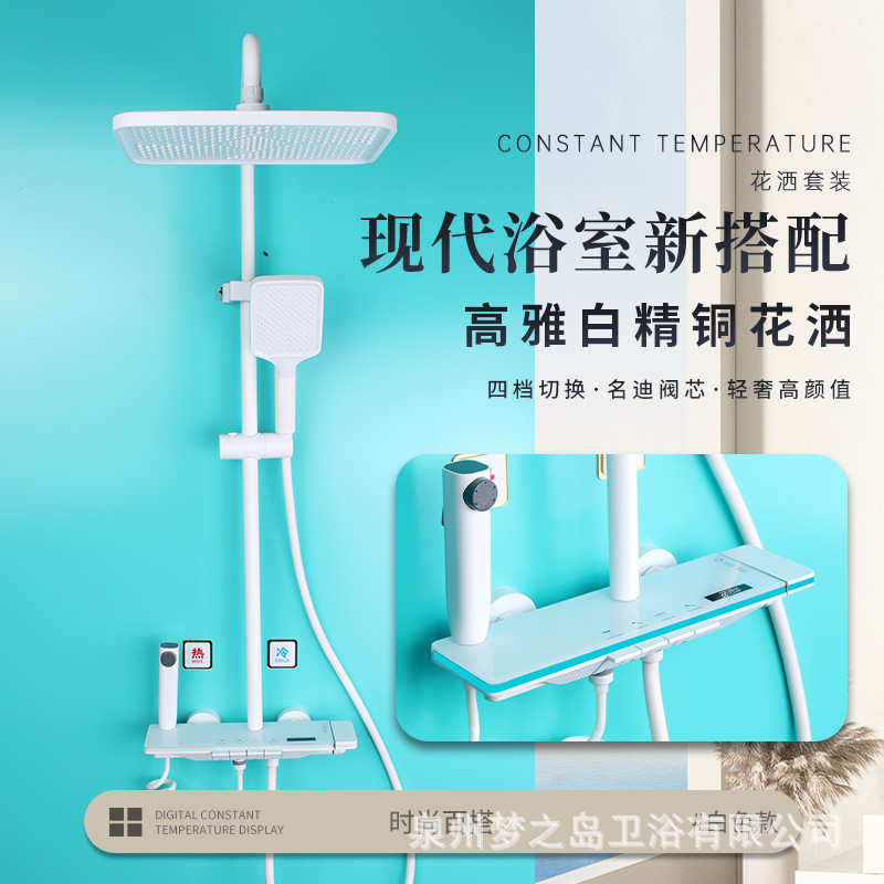 크림 화이트 피아노 일정한 온도 디지털 디스플레이 분위기 램프 샤워 세트 가정용 화장실 가압 비 목욕