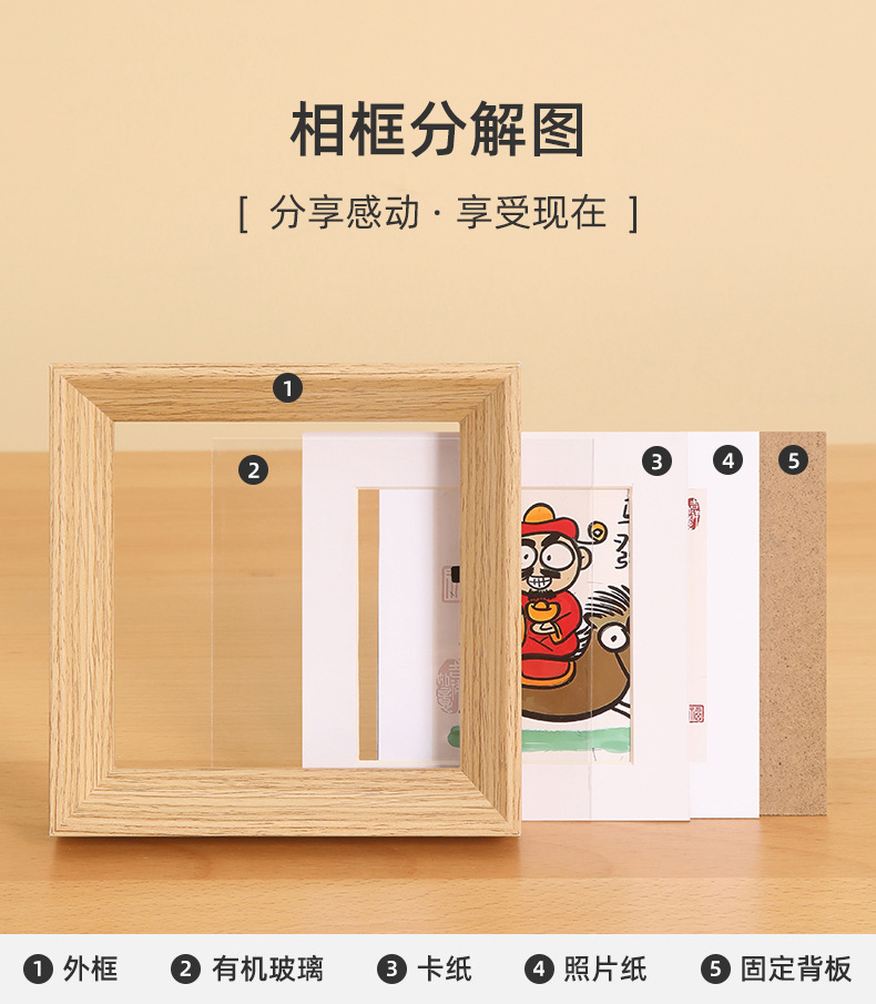 二、相框成品包含:(外框、塑料有机玻璃、照片纸,后固定背板、挂钩)