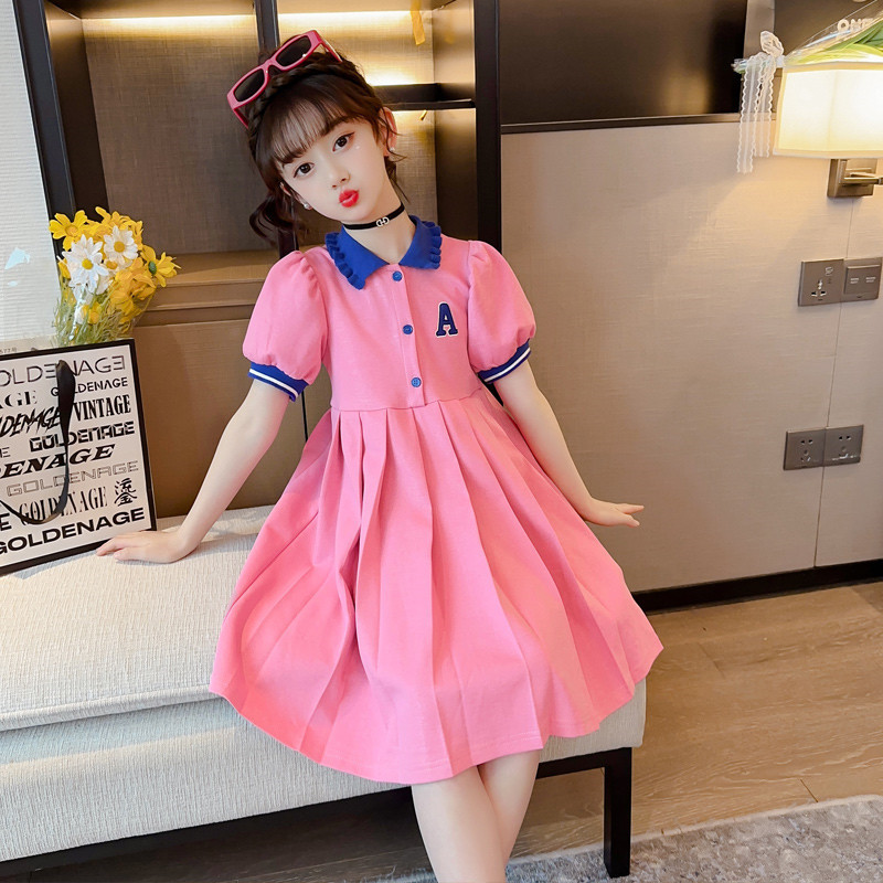 여자 원피스 여름 2023 새로운 스타일 어린이 반팔 원피스 대학 봄과 여름 여자 공주 원피스